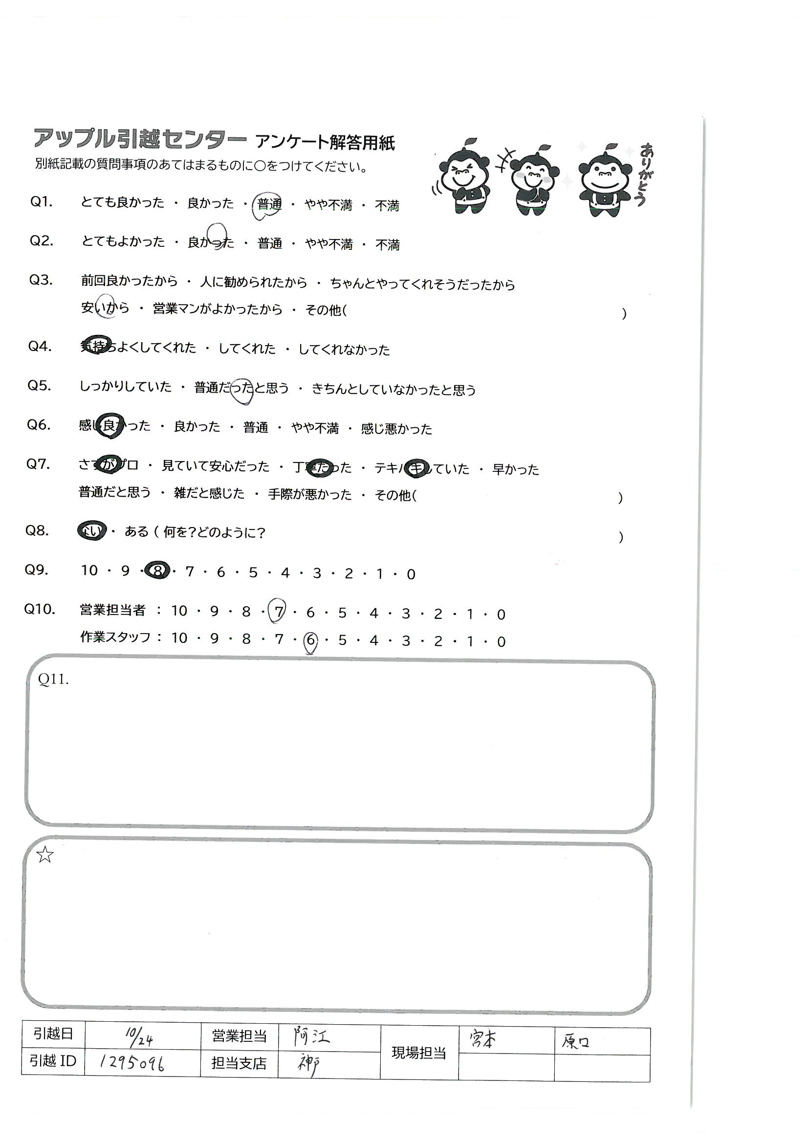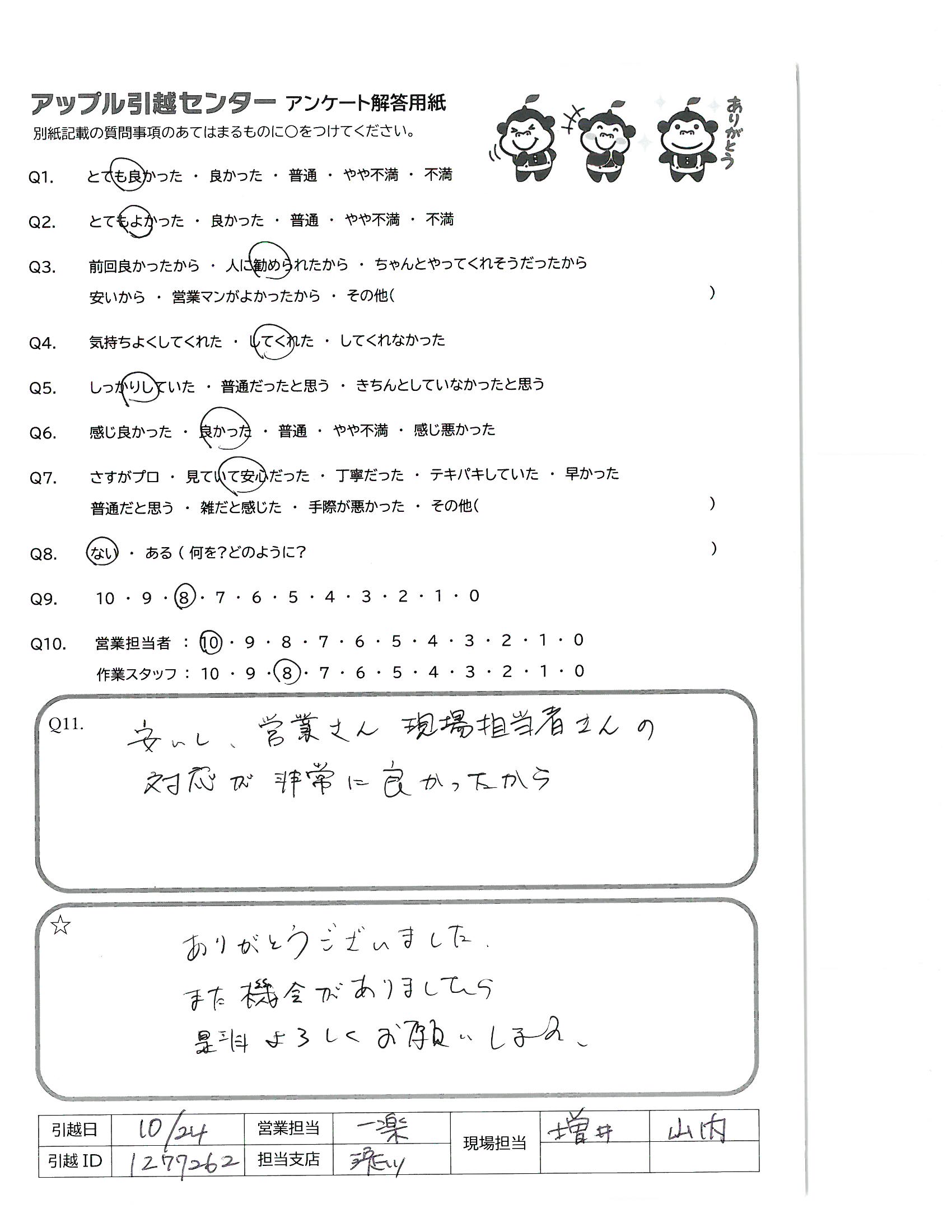 引越し日:2021年10月24日 エリア:福岡県福岡市東区