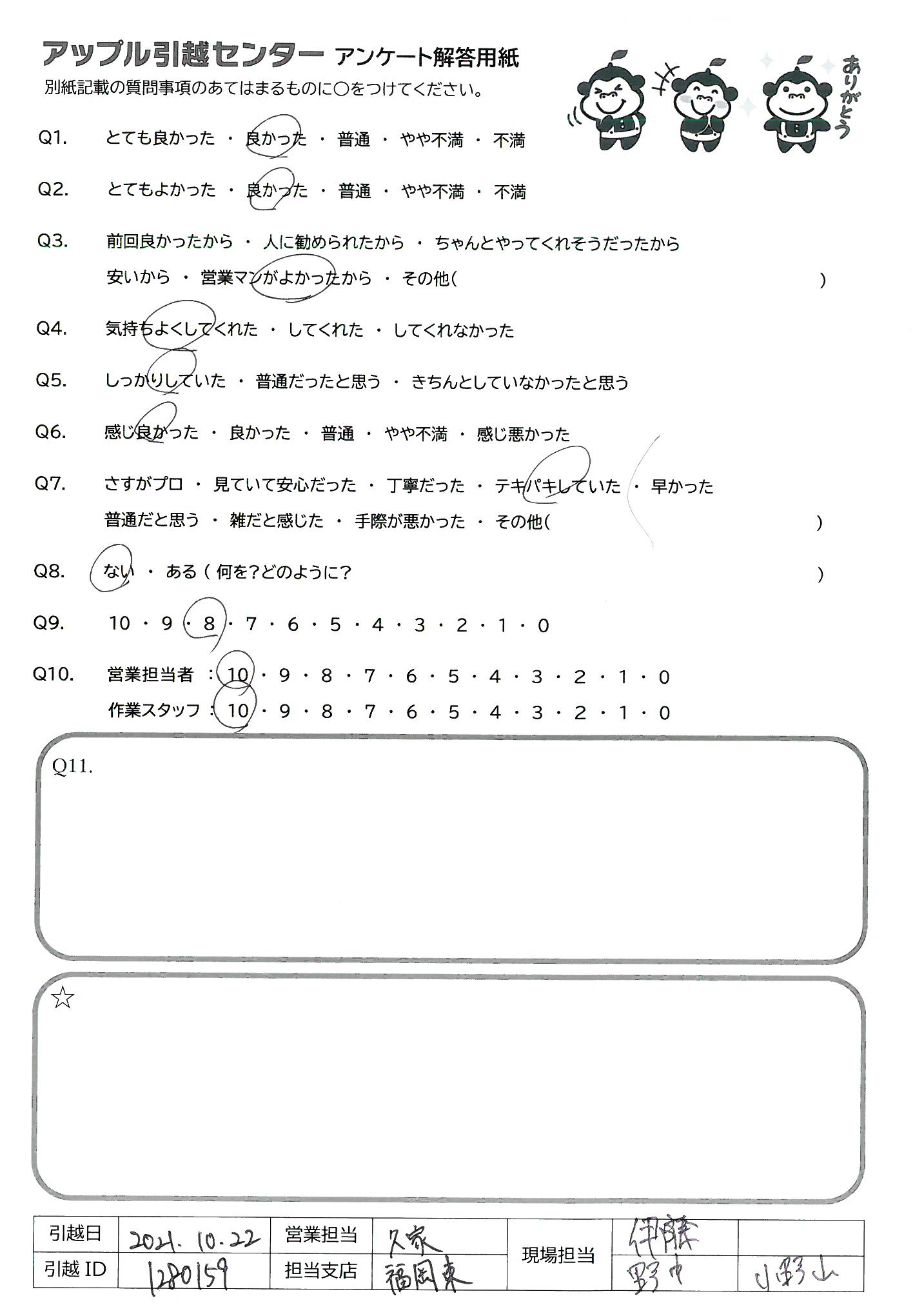 引越し日:2021年10月23日 エリア:福岡県福岡市博多区