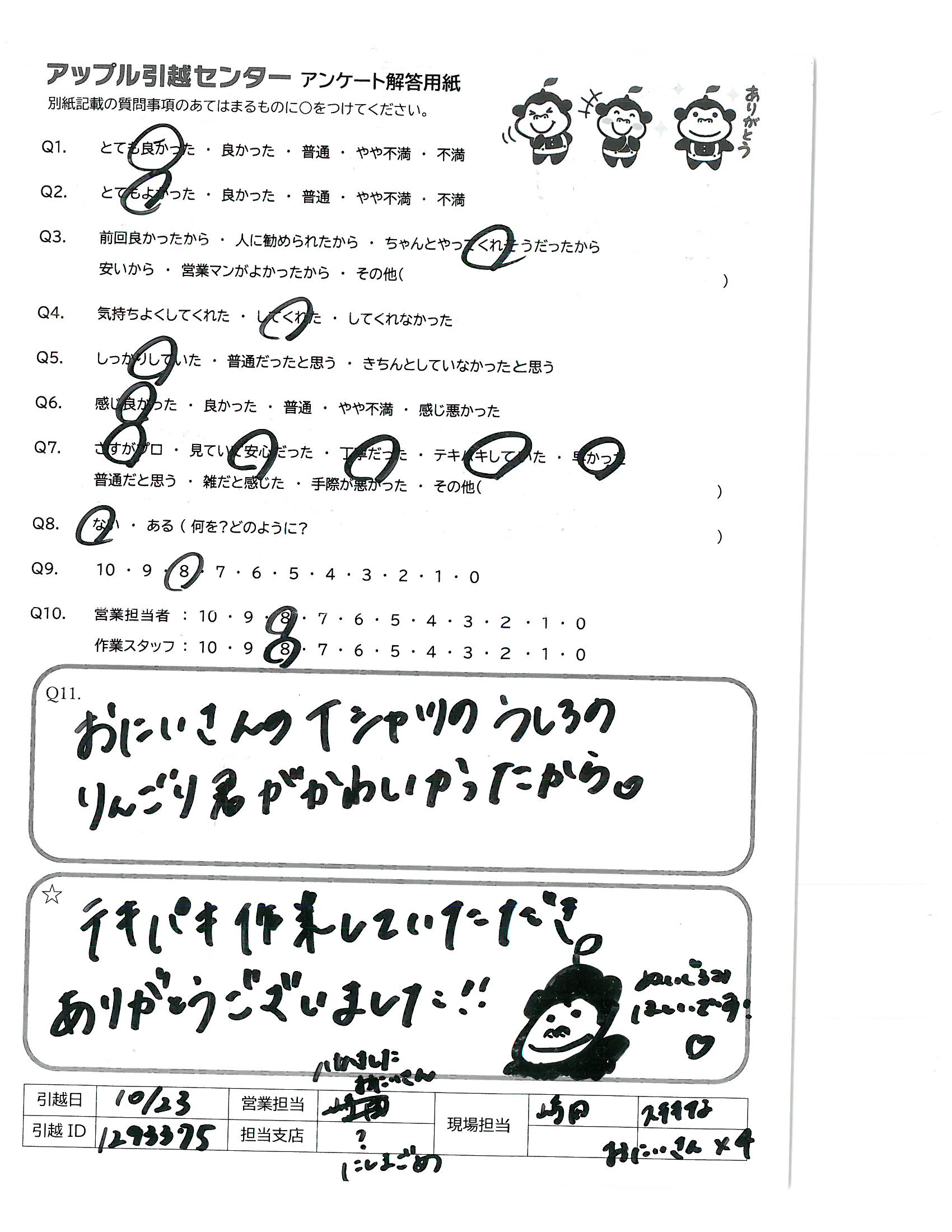 引越し日:2021年10月23日 エリア:福岡県福岡市東区