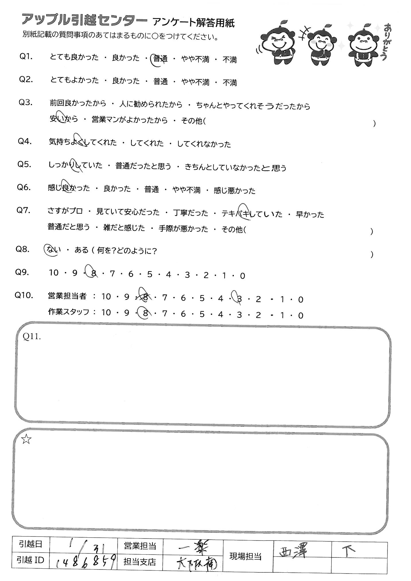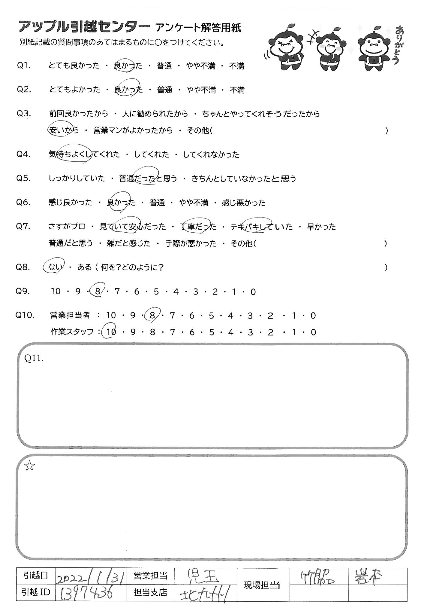 引越し日:2022年01月31日 エリア:愛知県江南市