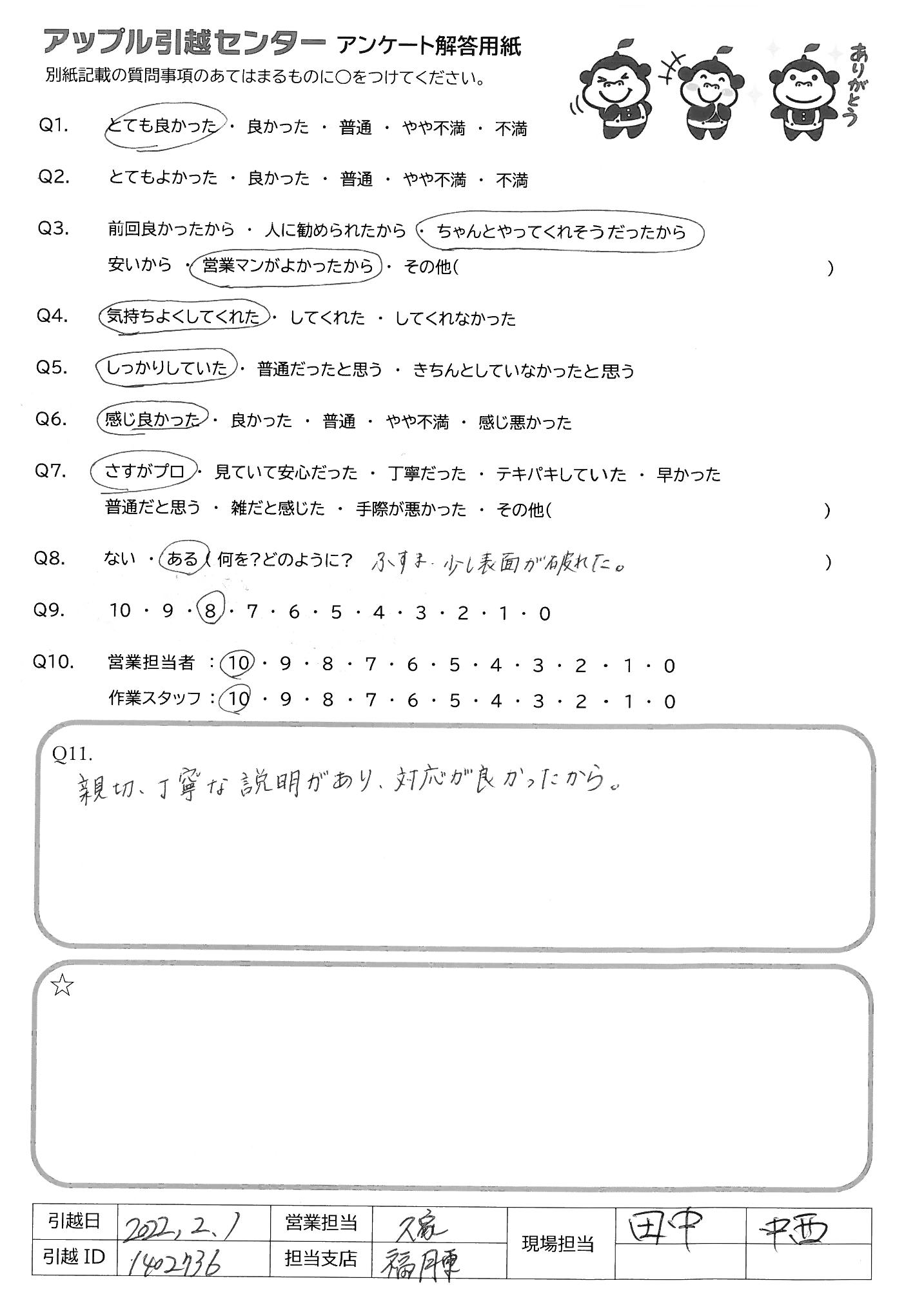 引越し日:2022年02月01日 エリア:福岡県直方市