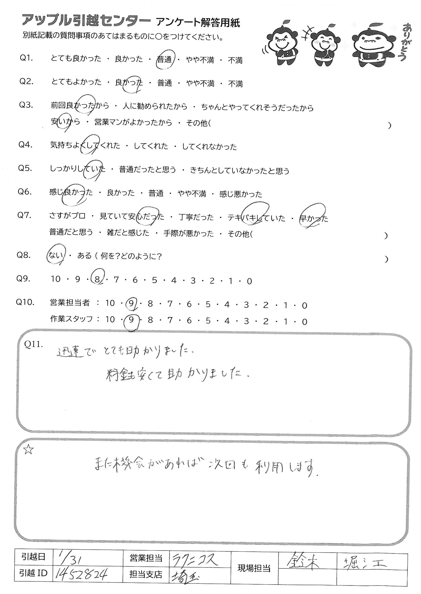 引越し日:2022年01月31日 エリア:埼玉県春日部市