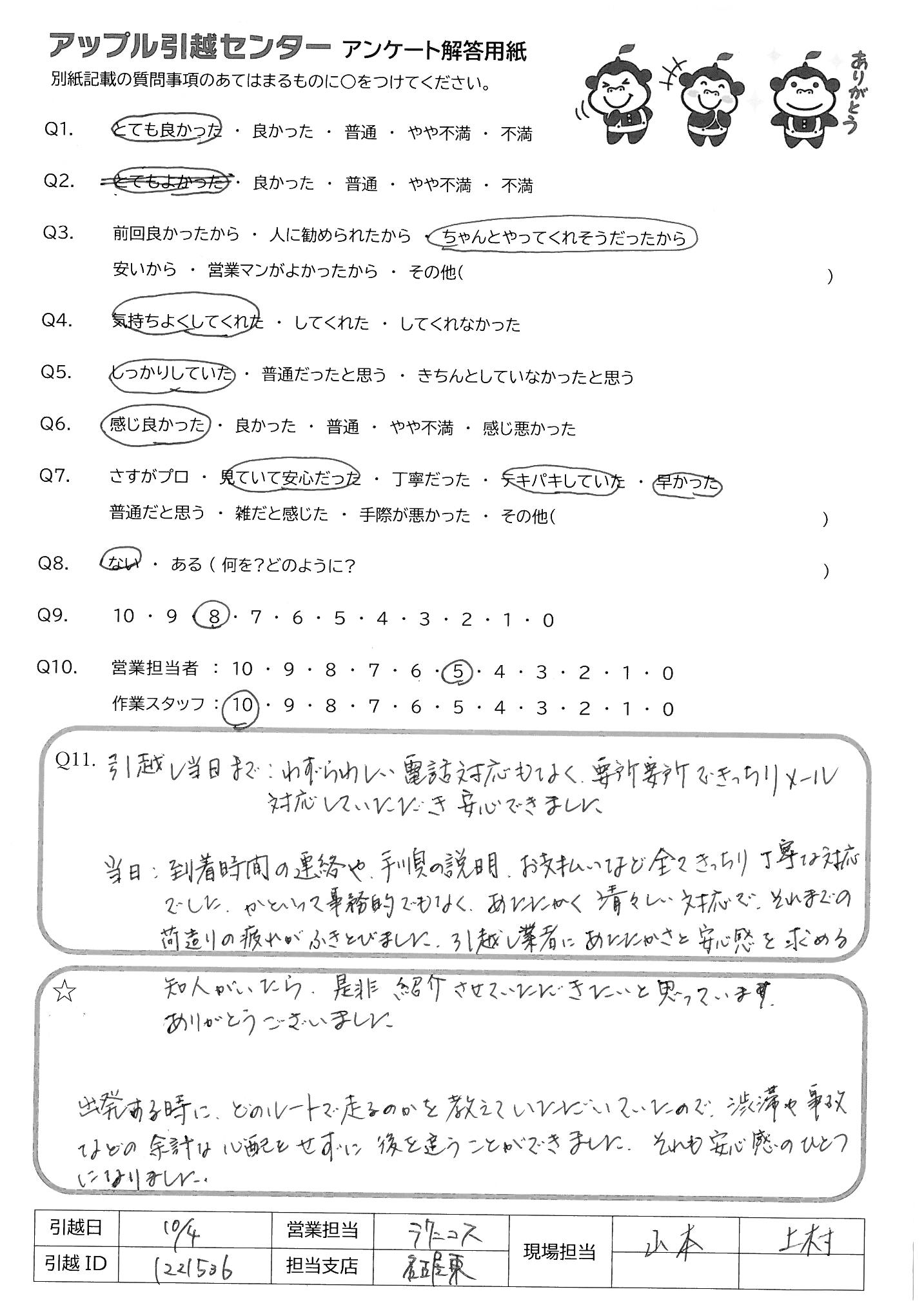 引越し日:2021年10月04日 エリア:東京都杉並区