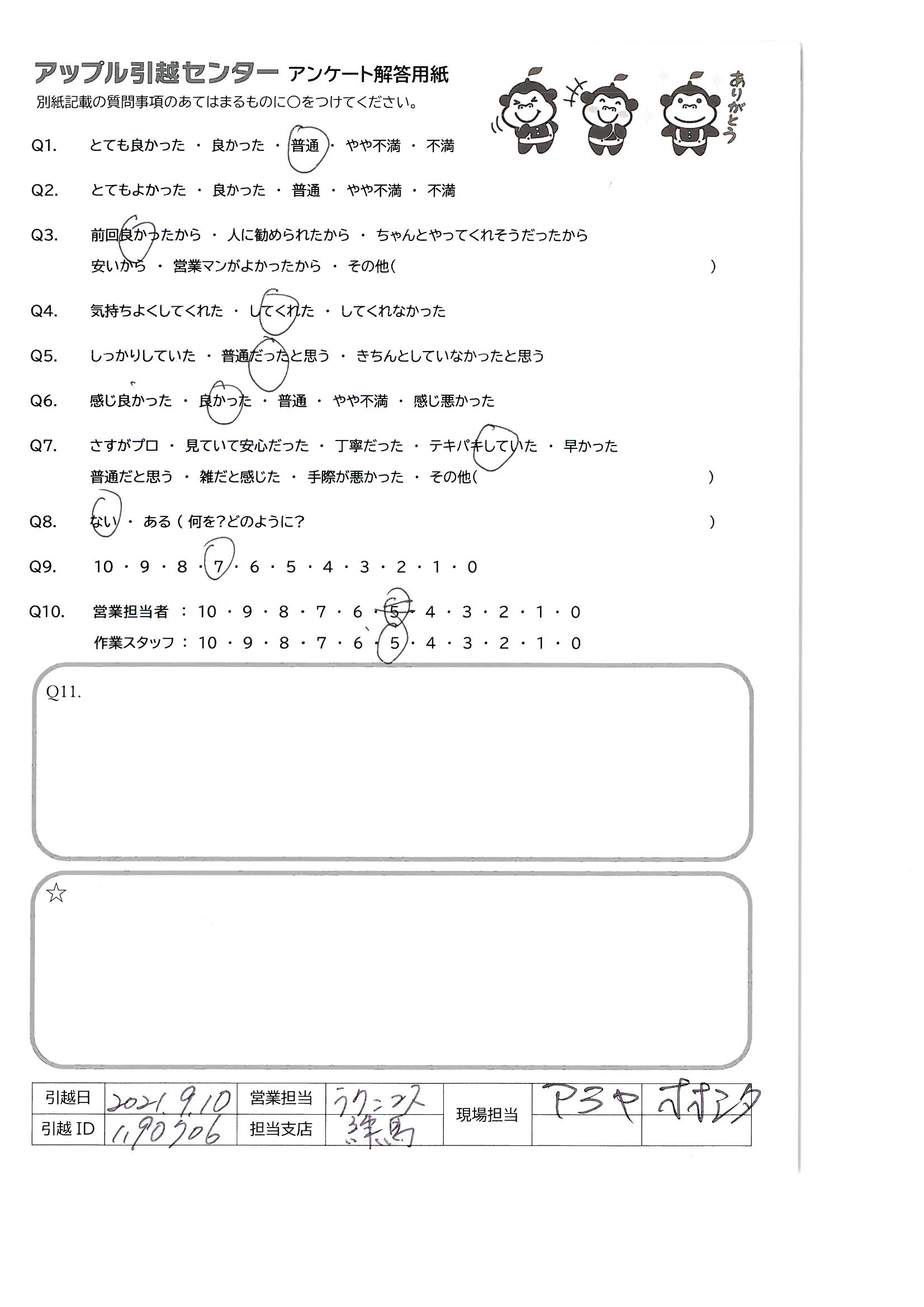 A.もしも今後また引越す事があれば、御社にお願いしたいです。