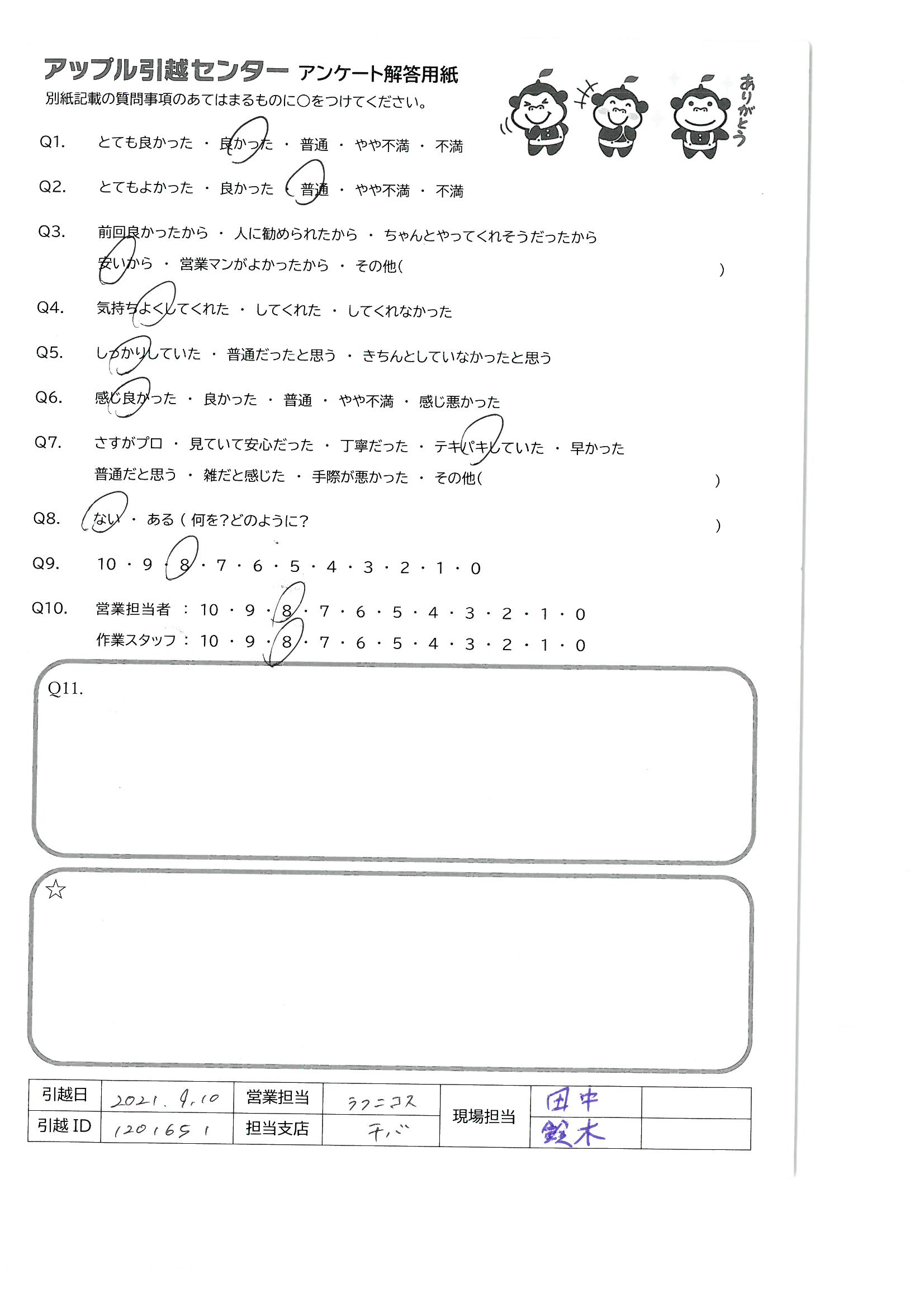 引越し日:2021年09月10日 エリア:千葉県千葉市美浜区