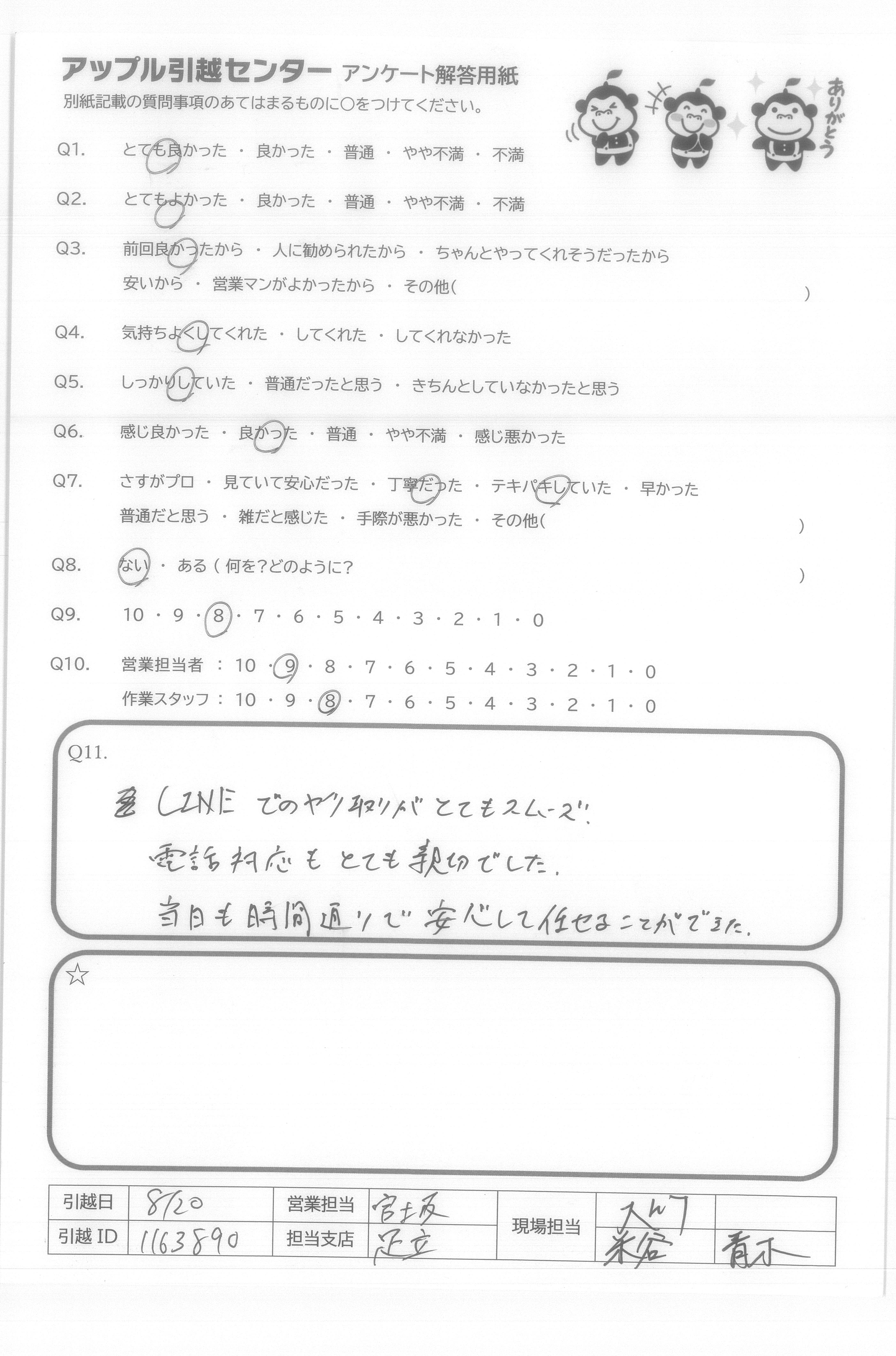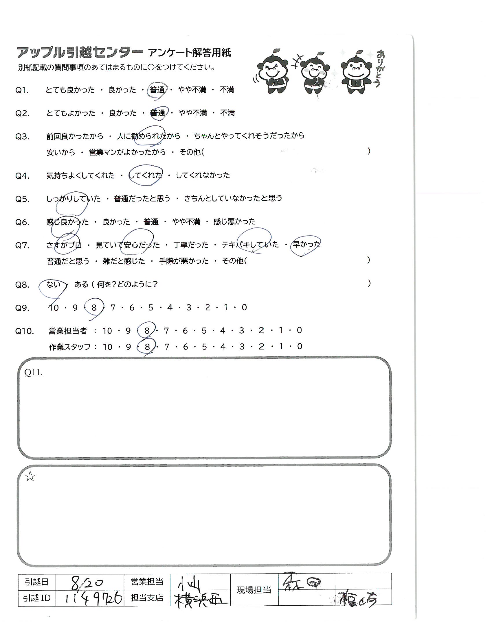 引越し日:2021年08月20日 エリア:神奈川県横浜市港北区