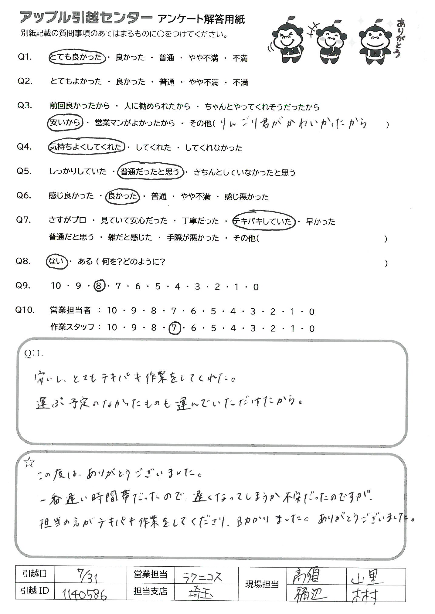 引越し日:2021年07月31日 エリア:埼玉県さいたま市中央区