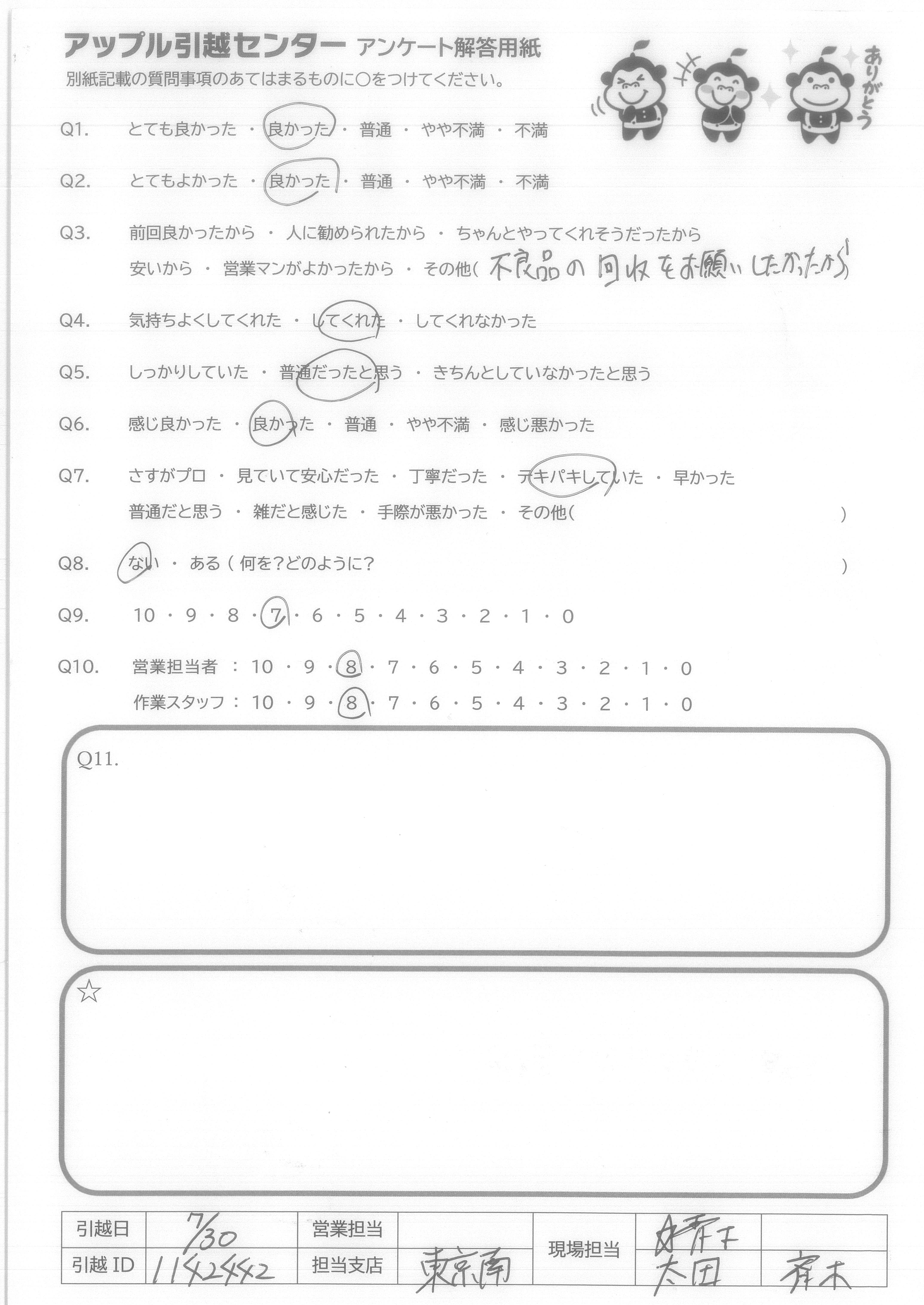 引越し日:2021年07月30日 エリア:東京都江東区