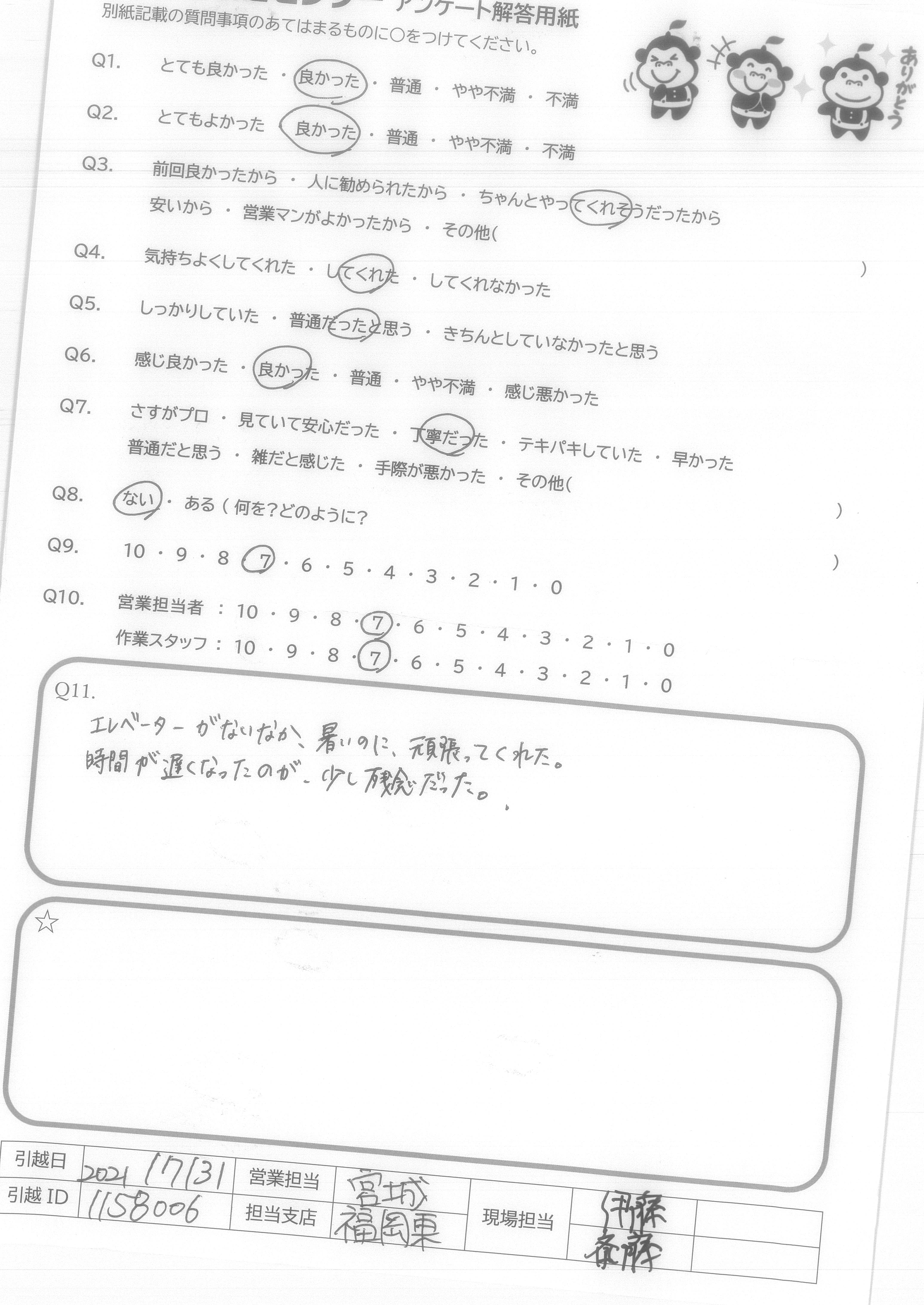 引越し日:2021年07月31日 エリア:福岡県北九州市小倉北区