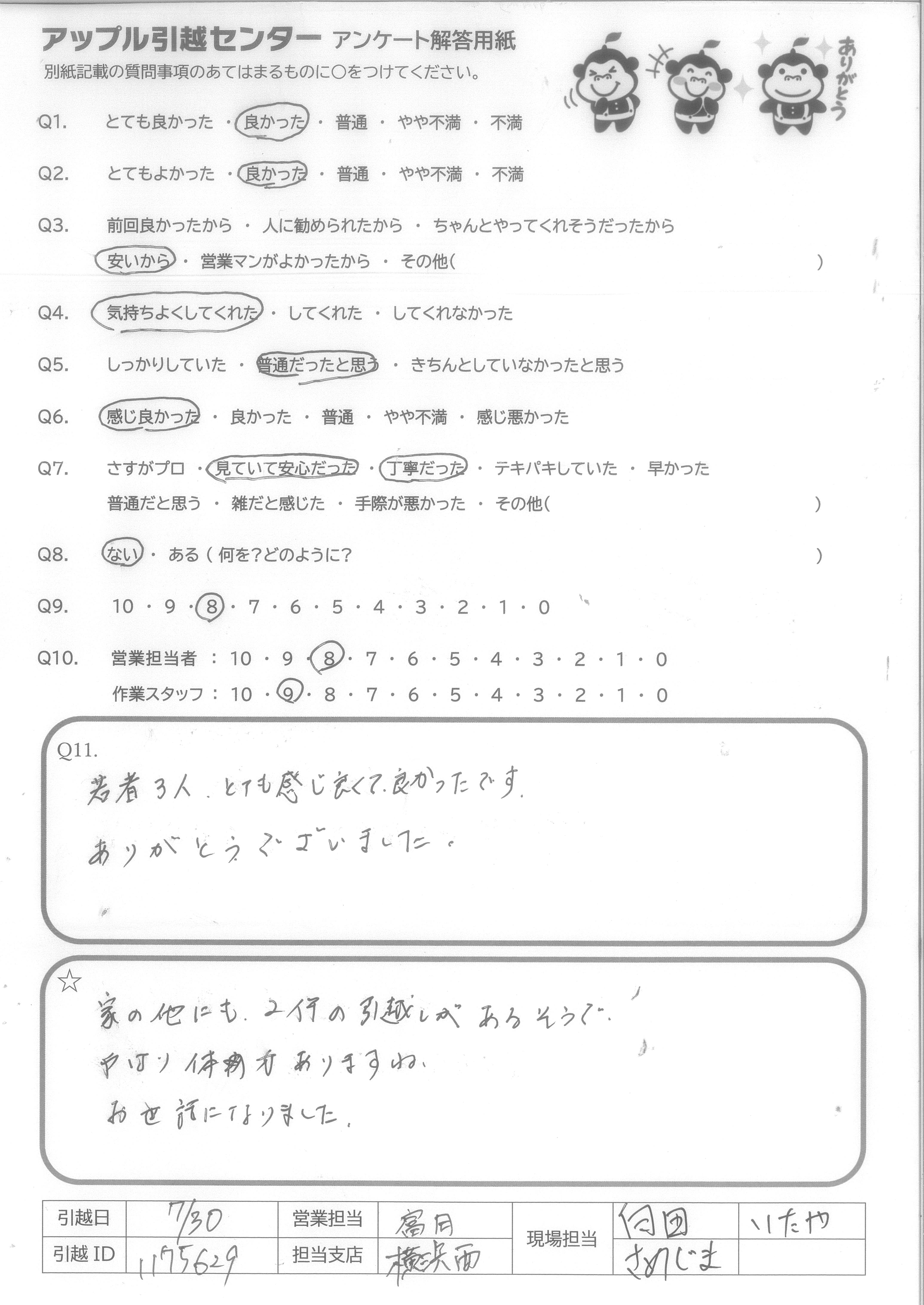 引越し日:2021年07月30日 エリア:神奈川県横浜市神奈川区