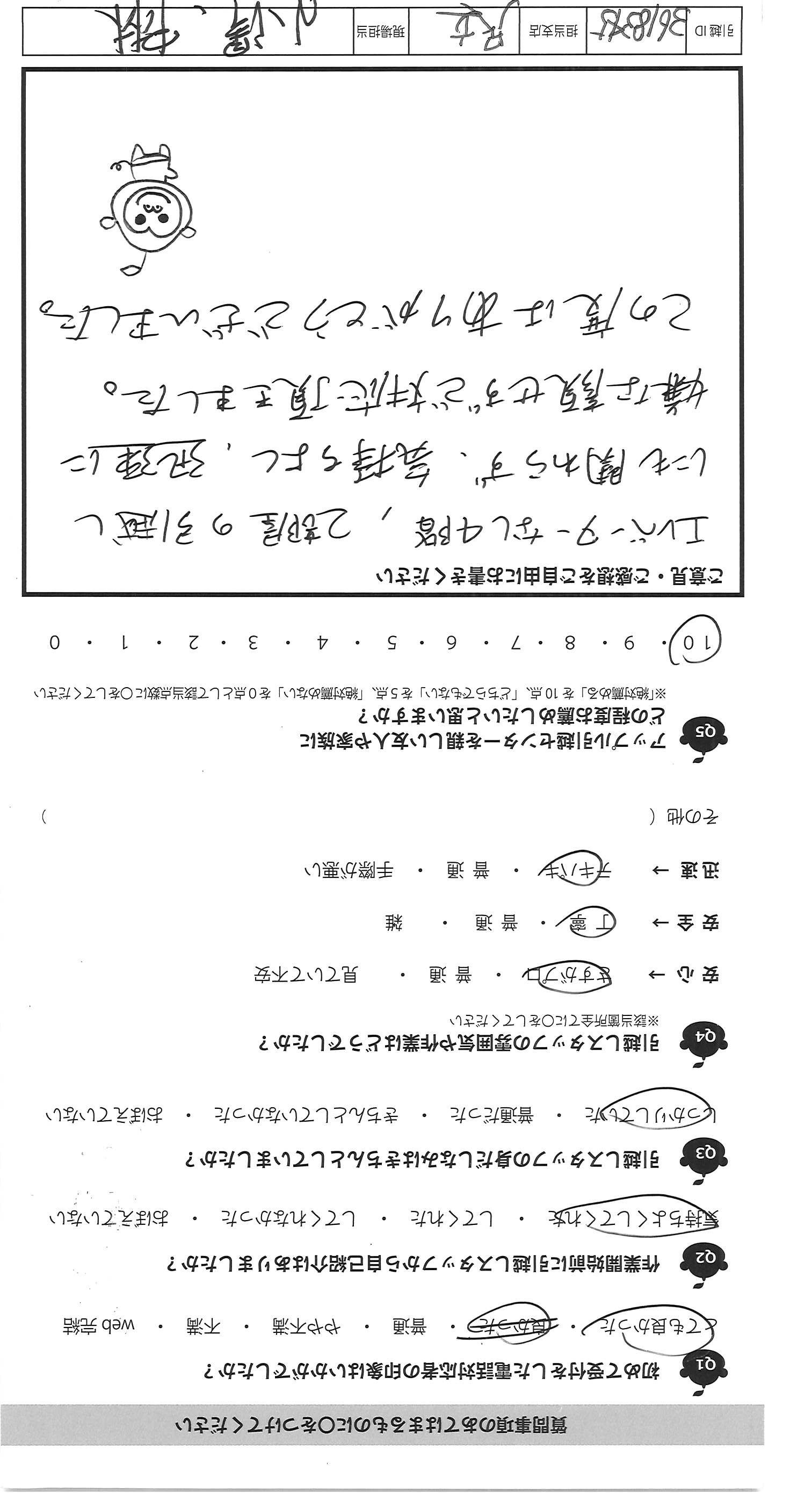A.毎回お世話になっています。いつもテキパキ快く作業いただけていてお願いしてよかったと思えます。次回も機会がありましたらお願いしたいと思います。ありがとうございました。