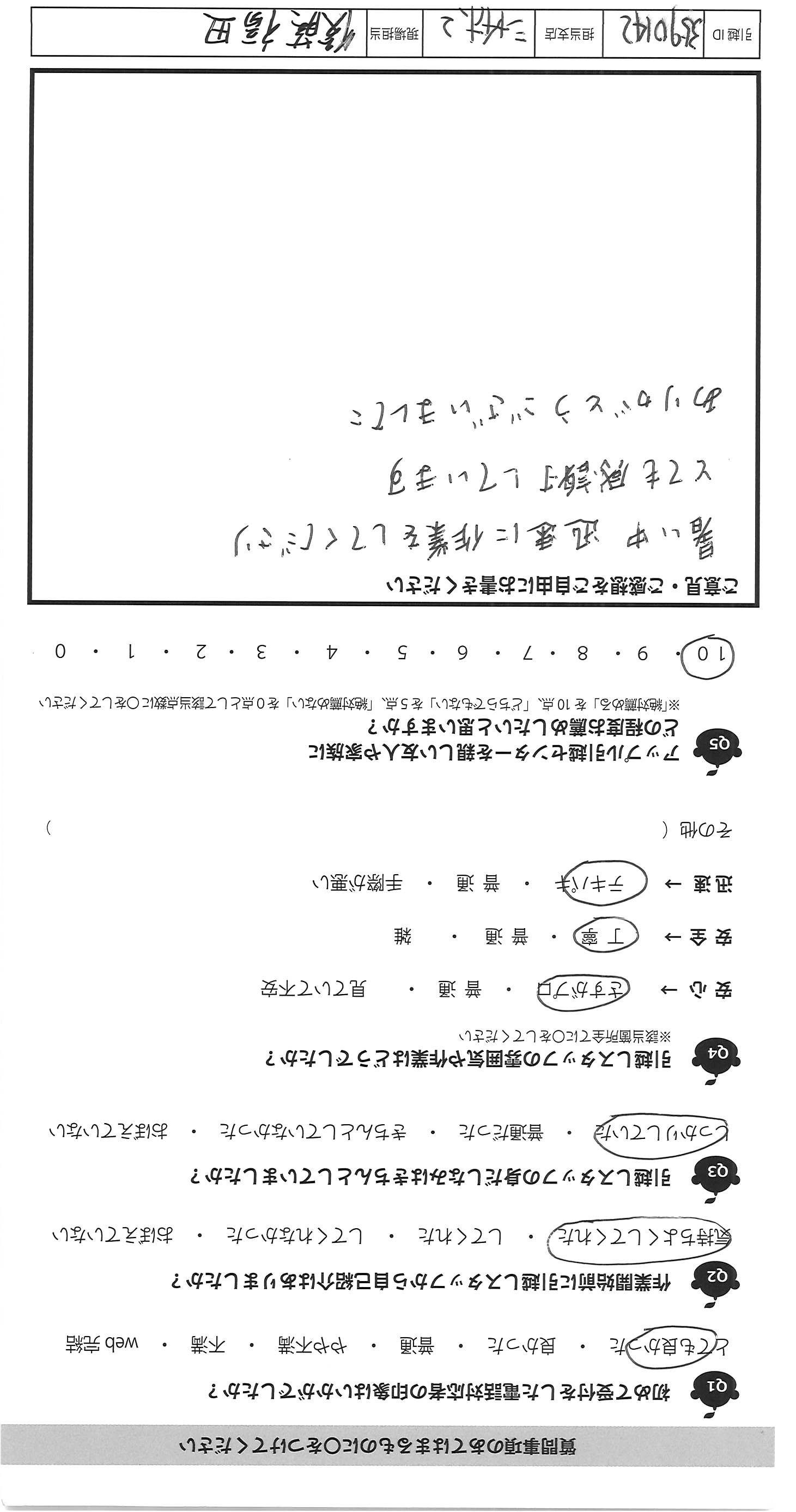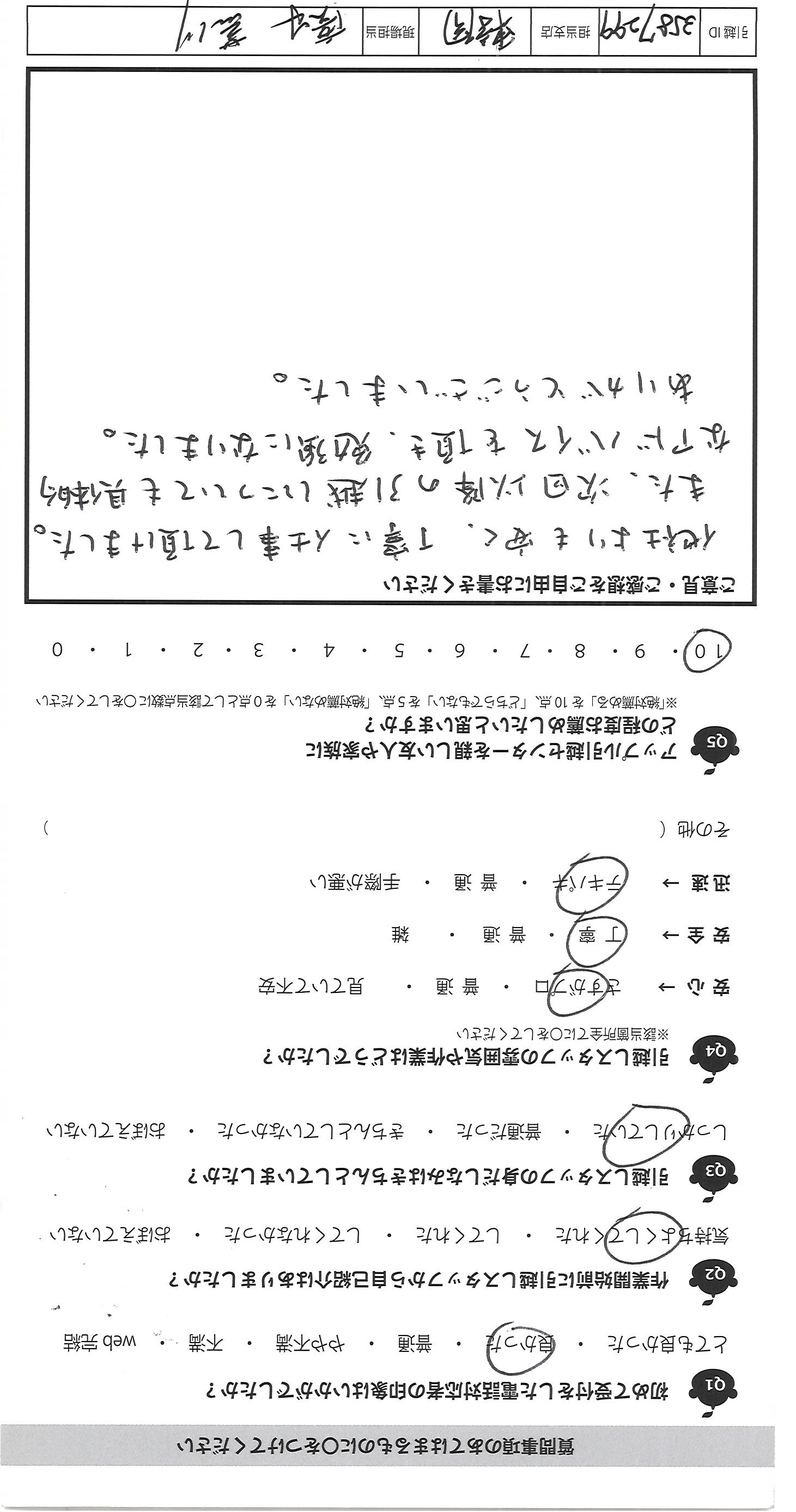 A.・とてもテキパキと丁寧に対応していただき、 気持ちよかったです。 お2人に来てもらえてよかったです。 ・Q5で[9]にしたのは、段ボール回収が ¥8,000と費用が発生するとの事だったので。 (マイナス[1]としました) ありがとうございました。