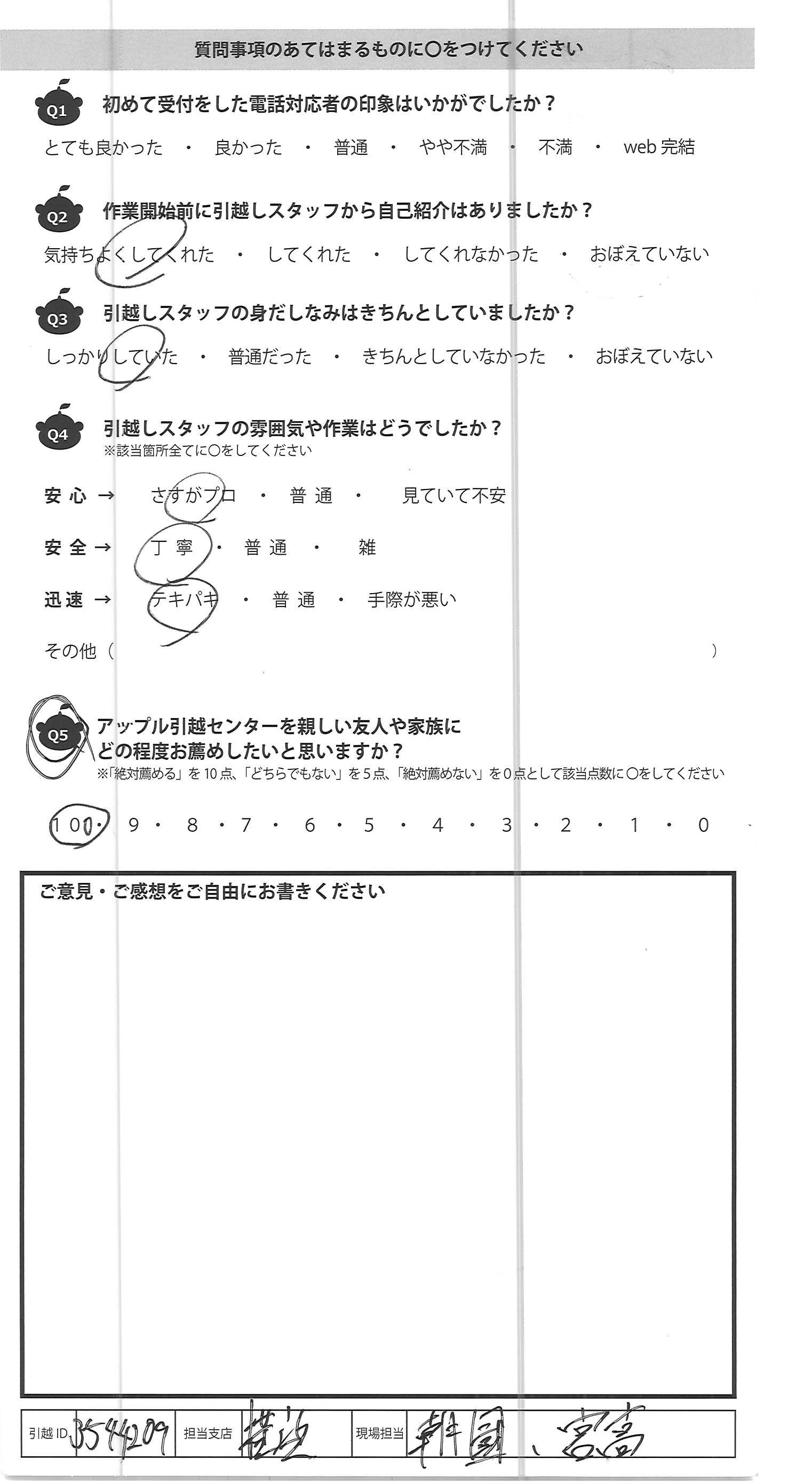 アップル引越センターでは、面映いお褒めの言葉も、胸に突き刺さるお叱りのコメントも、