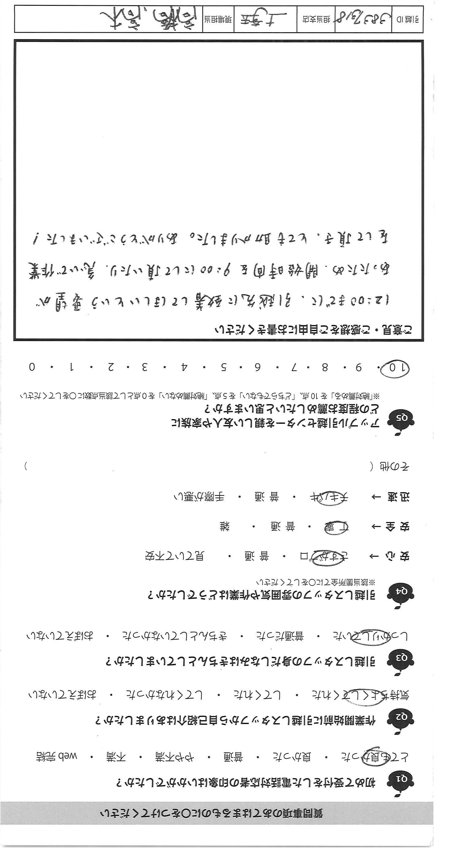 A.書籍、冊子が多くかなり重い荷物が 多かったにもかかわらず笑顔で対応 して下さって、しかも手際が良く作業 も迅速で見ていて感心しました。