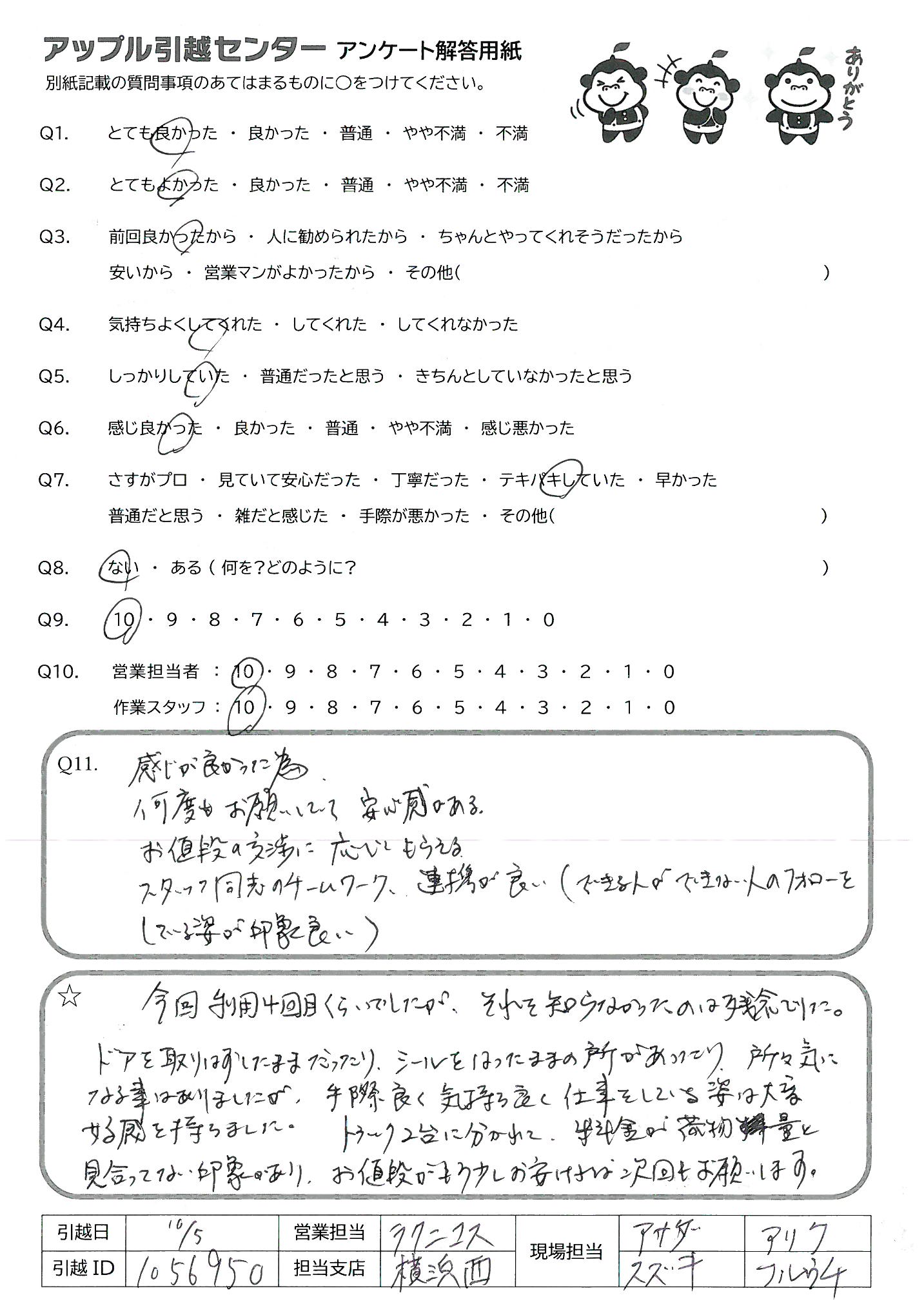 引越し日:2021年10月05日 エリア:神奈川県横浜市保土ケ谷区