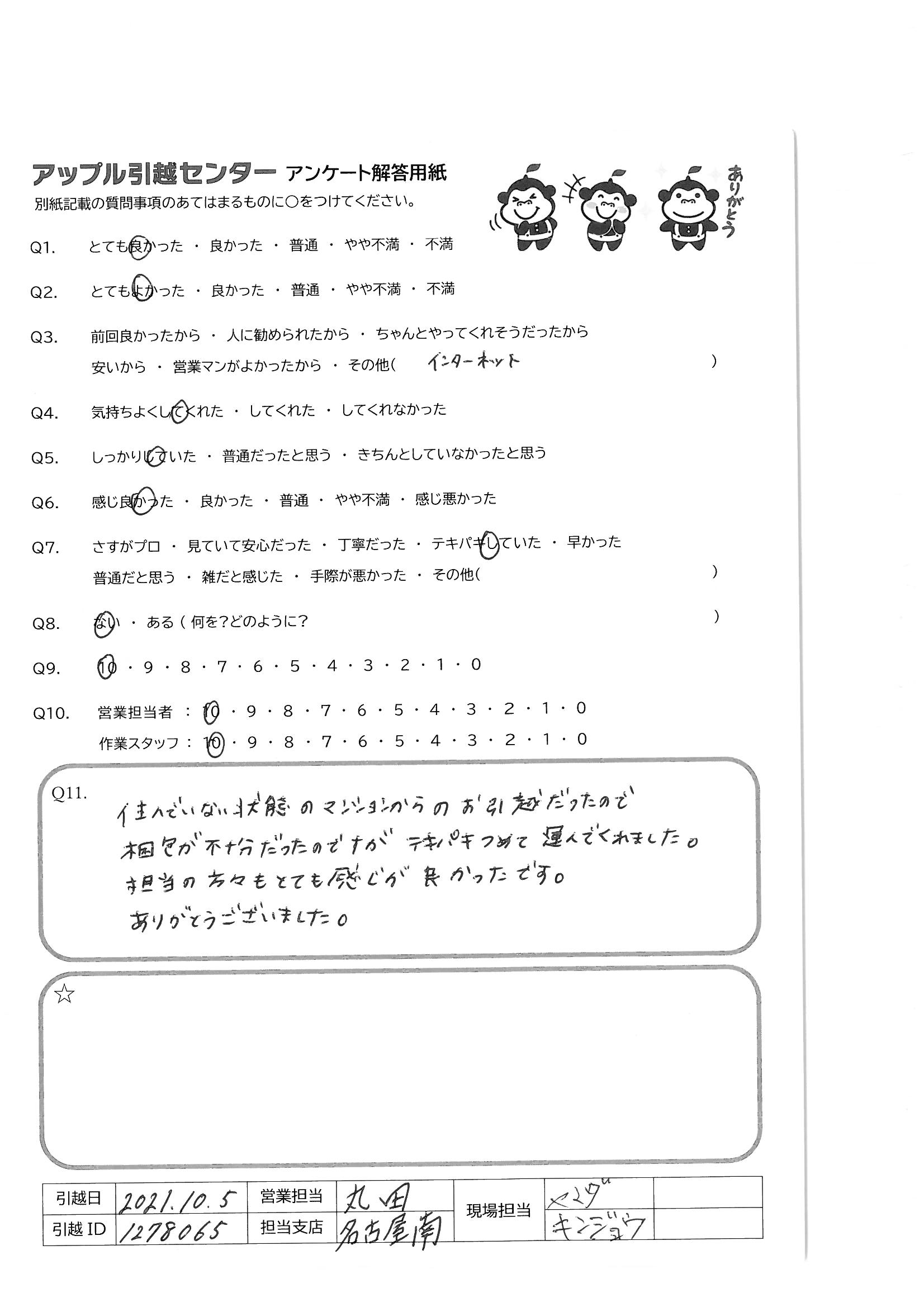 引越し日:2021年10月04日 エリア:愛知県名古屋市東区