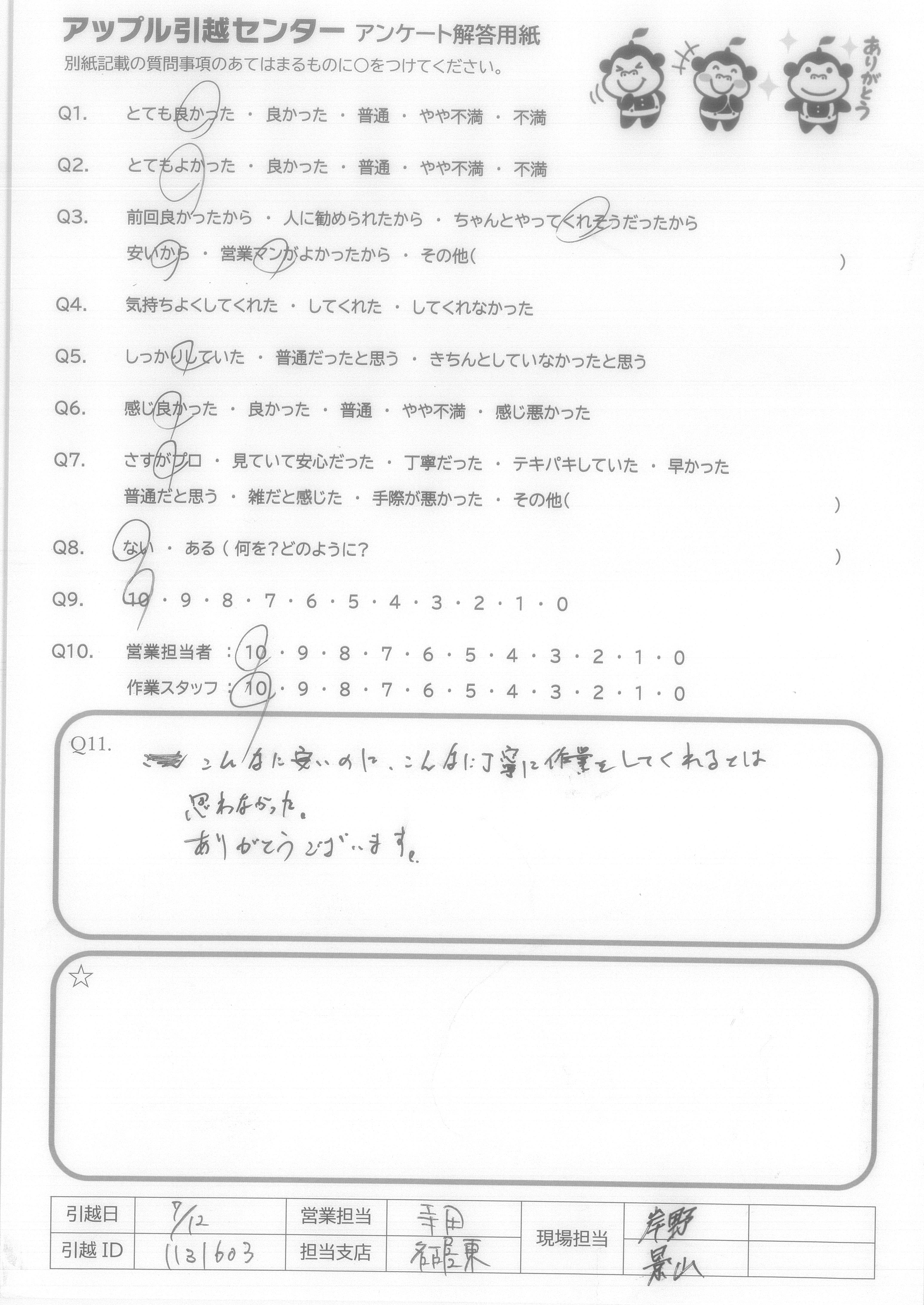 A.今回は本当に良い引っ越しができました ありがとうございました