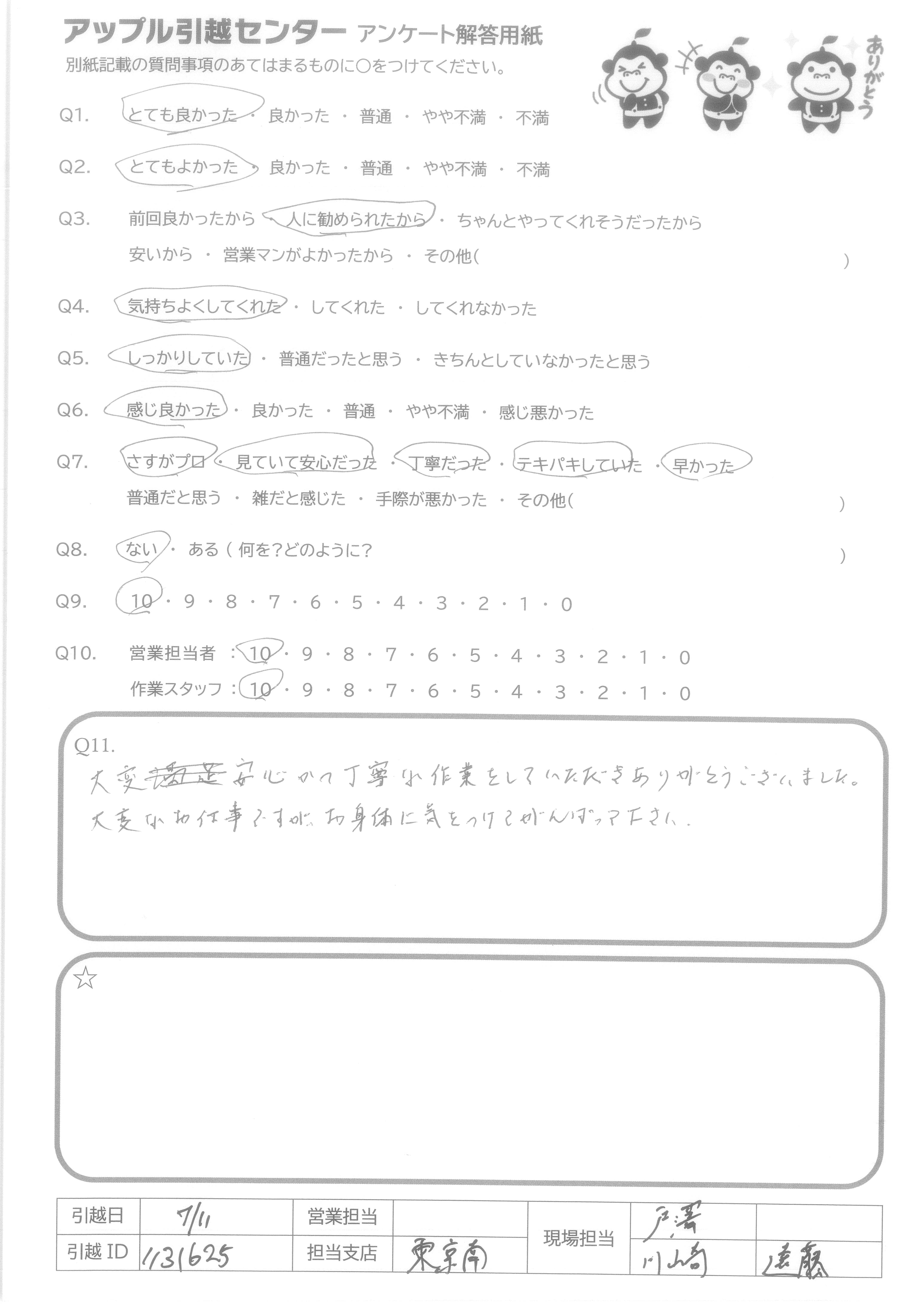 引越し日:2021年07月11日 エリア:神奈川県川崎市中原区