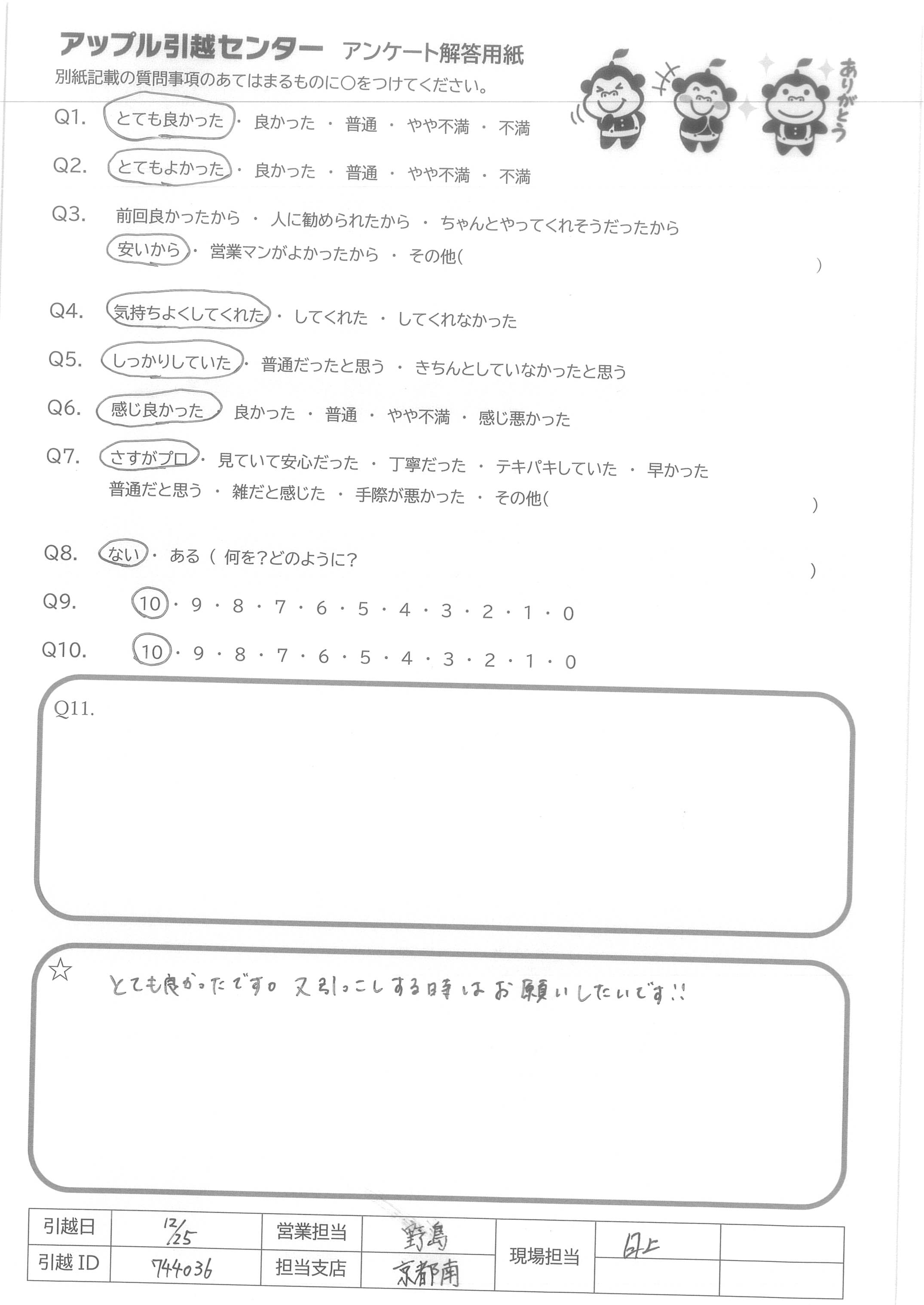 A.次回引越の際には再度遠藤様にお願いしたいです。