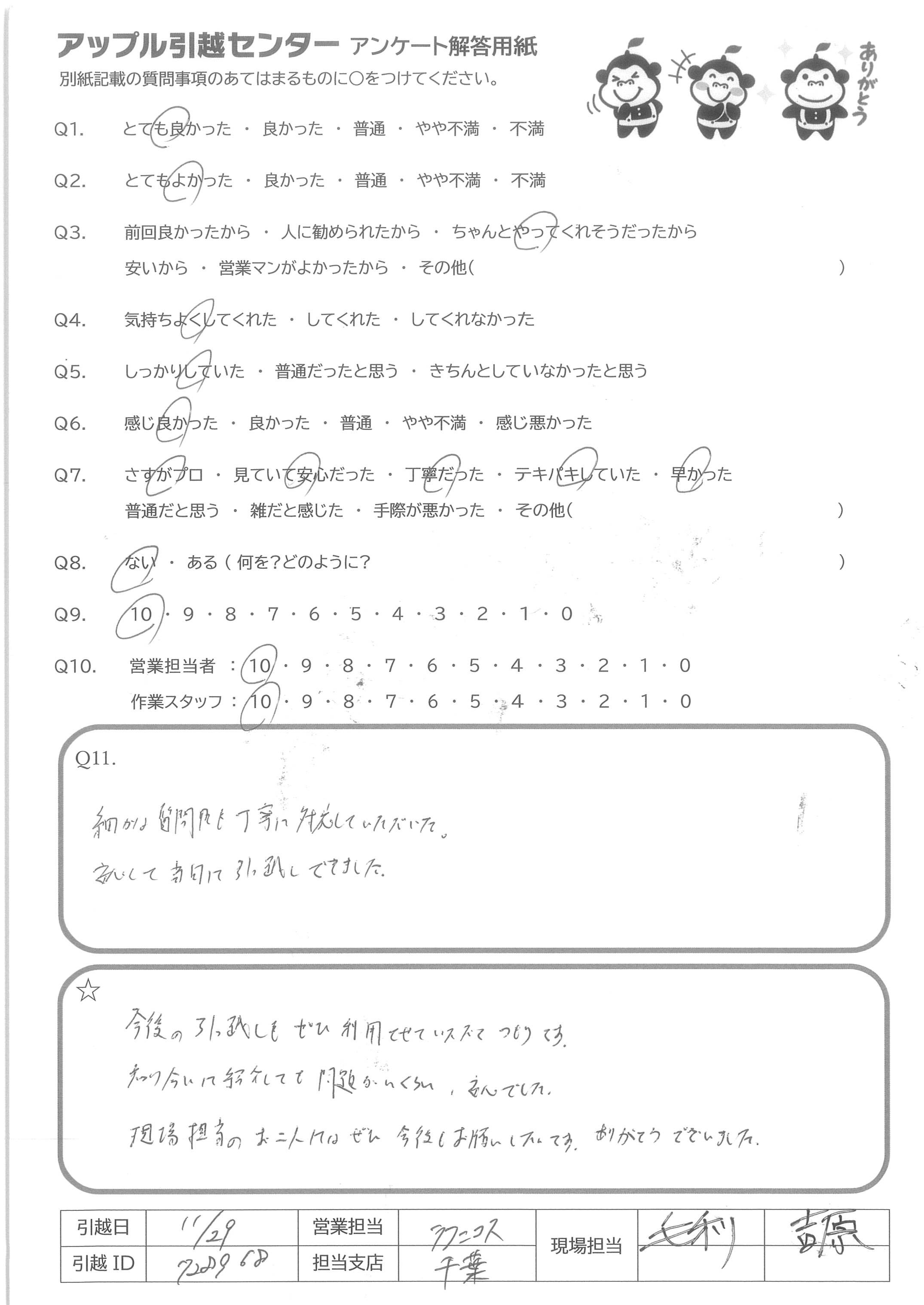 引越し日:2020年11月29日 エリア:千葉県八千代市