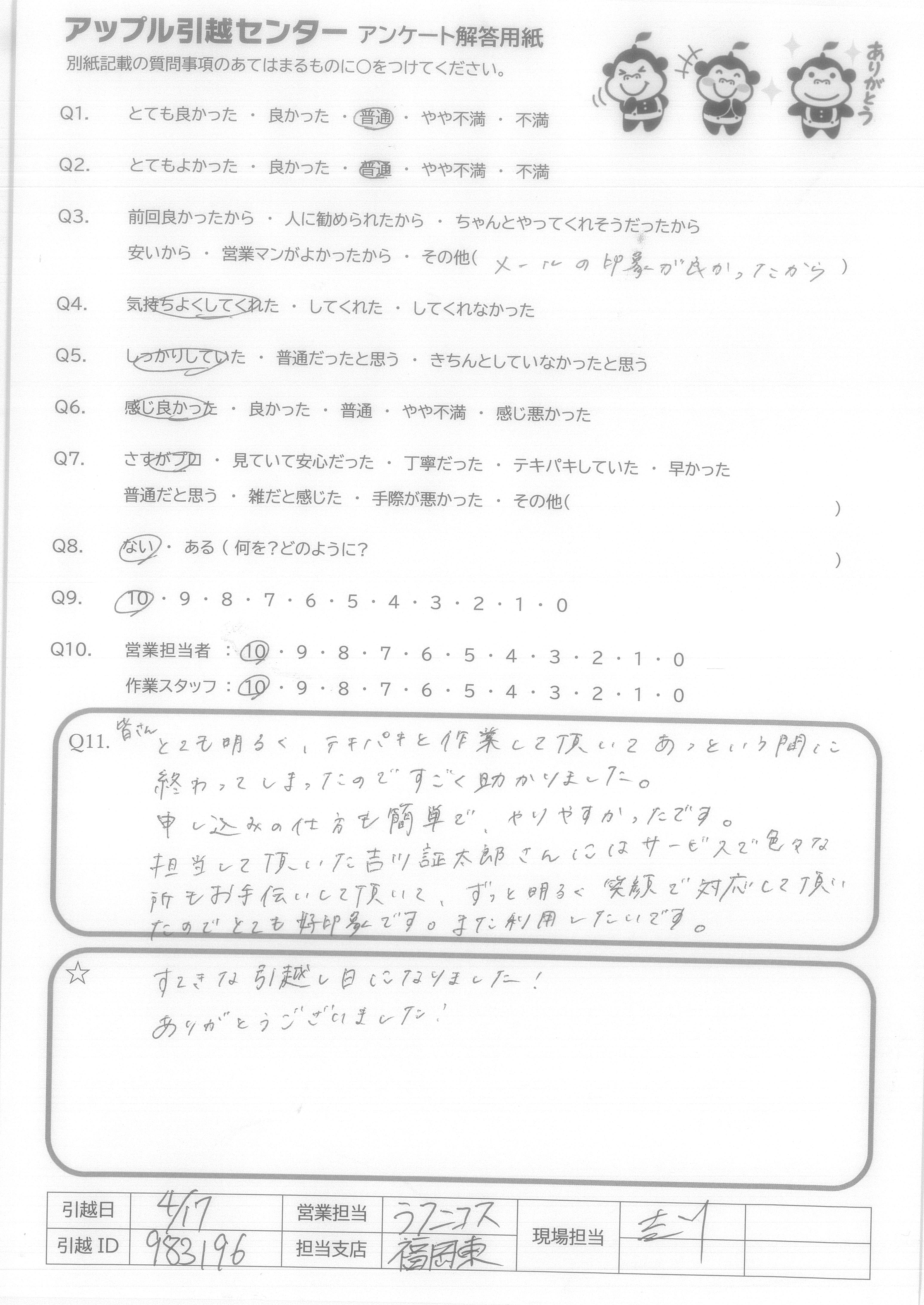 引越し日:2021年04月17日 エリア:福岡県福岡市博多区