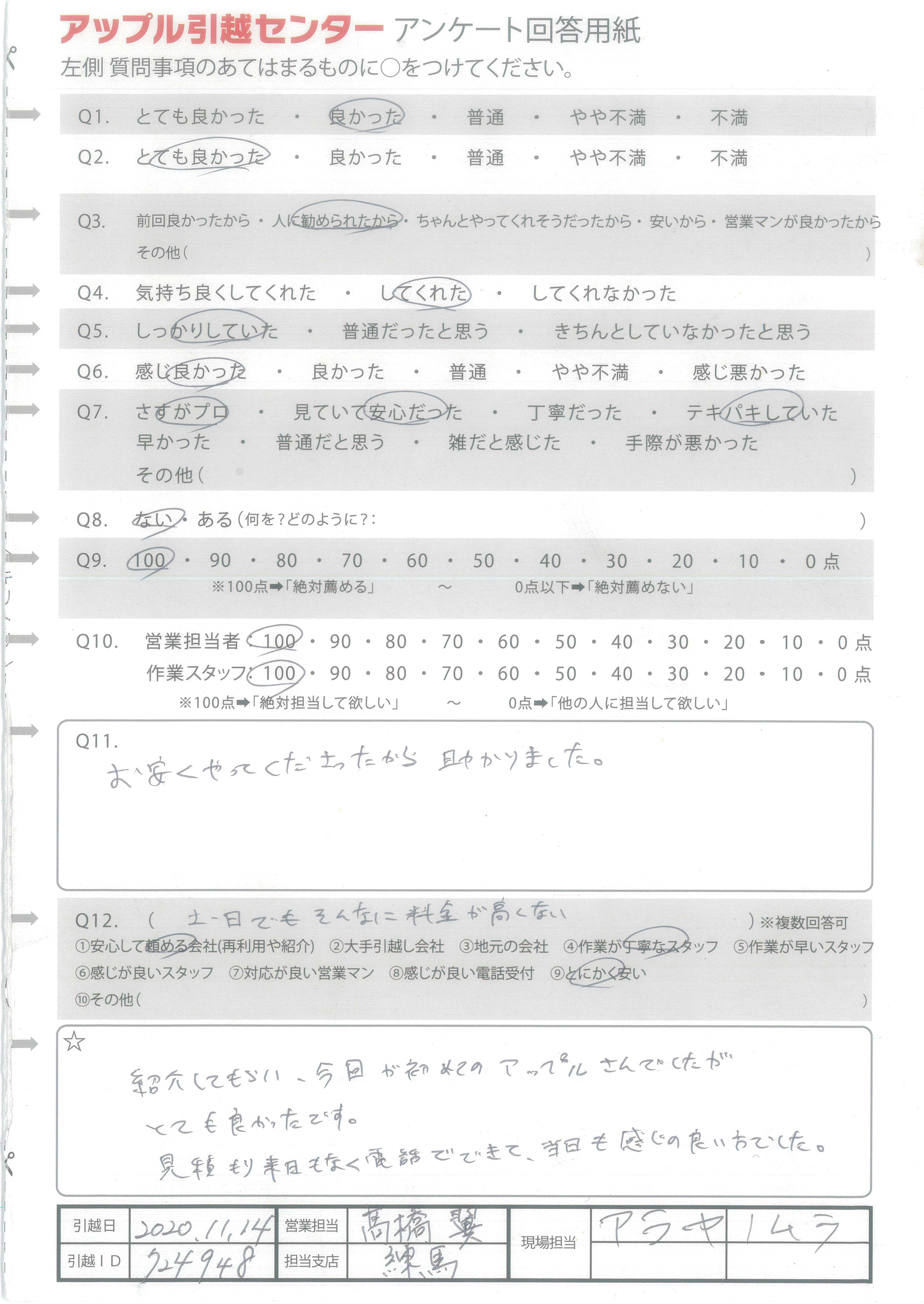 引越し日:2020年11月14日 エリア:埼玉県川口市