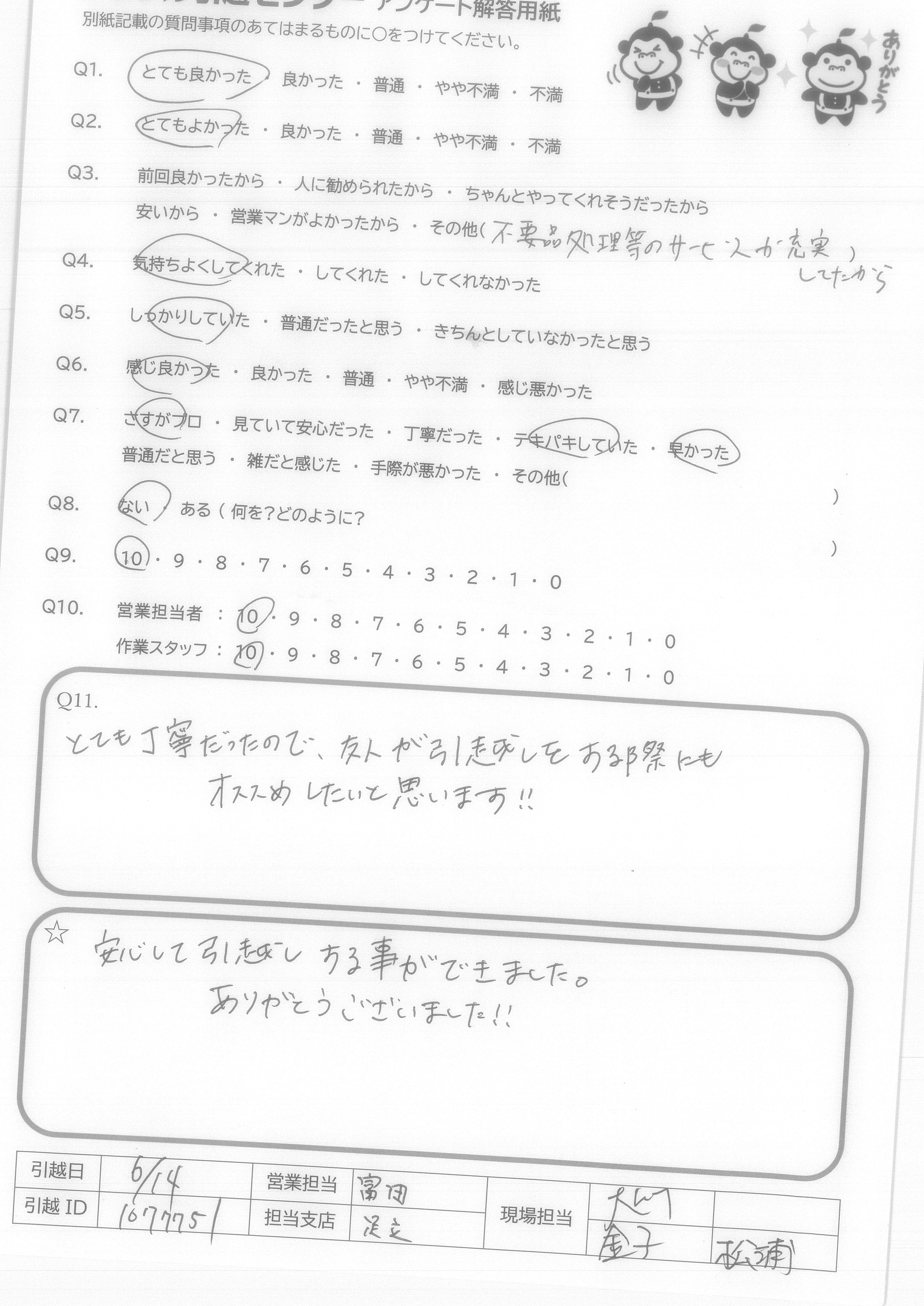 A.安心して引越しする事ができました。 ありがとうございました!!