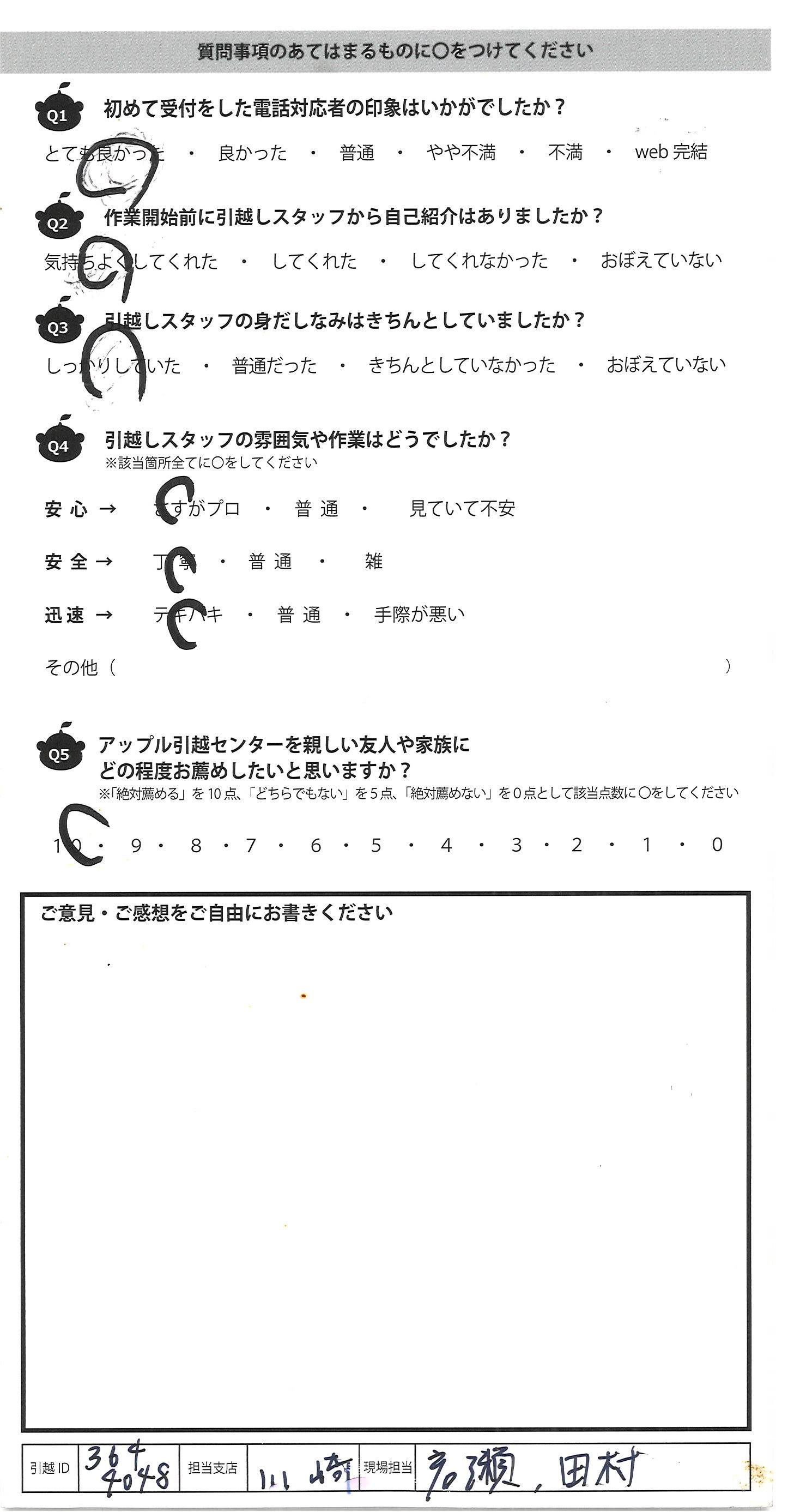 アップル引越センターでは、面映いお褒めの言葉も、胸に突き刺さるお叱りのコメントも、