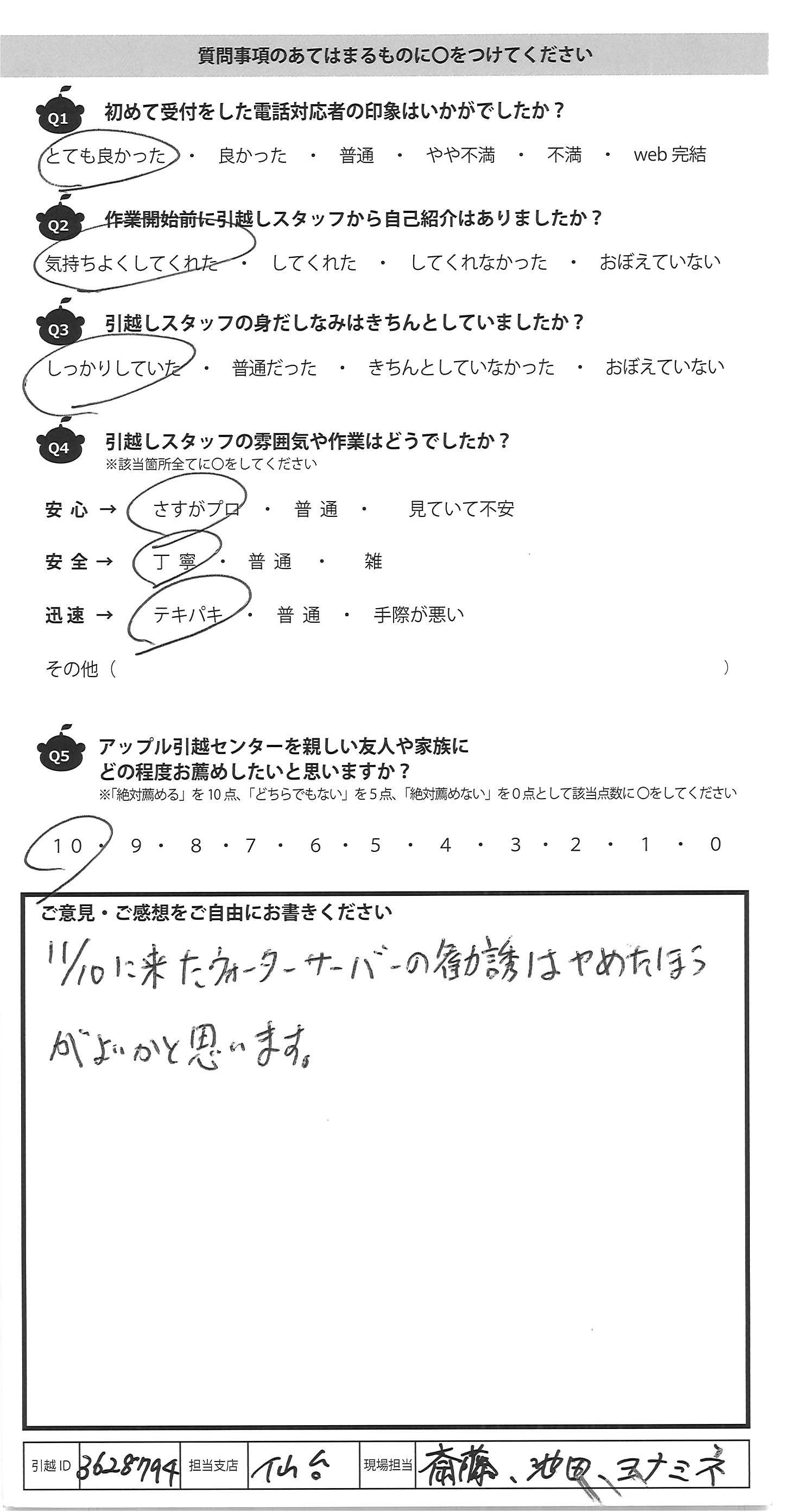 A.11/10に来たウォーターサーバーの勧誘はやめたほう がよいかと思います。