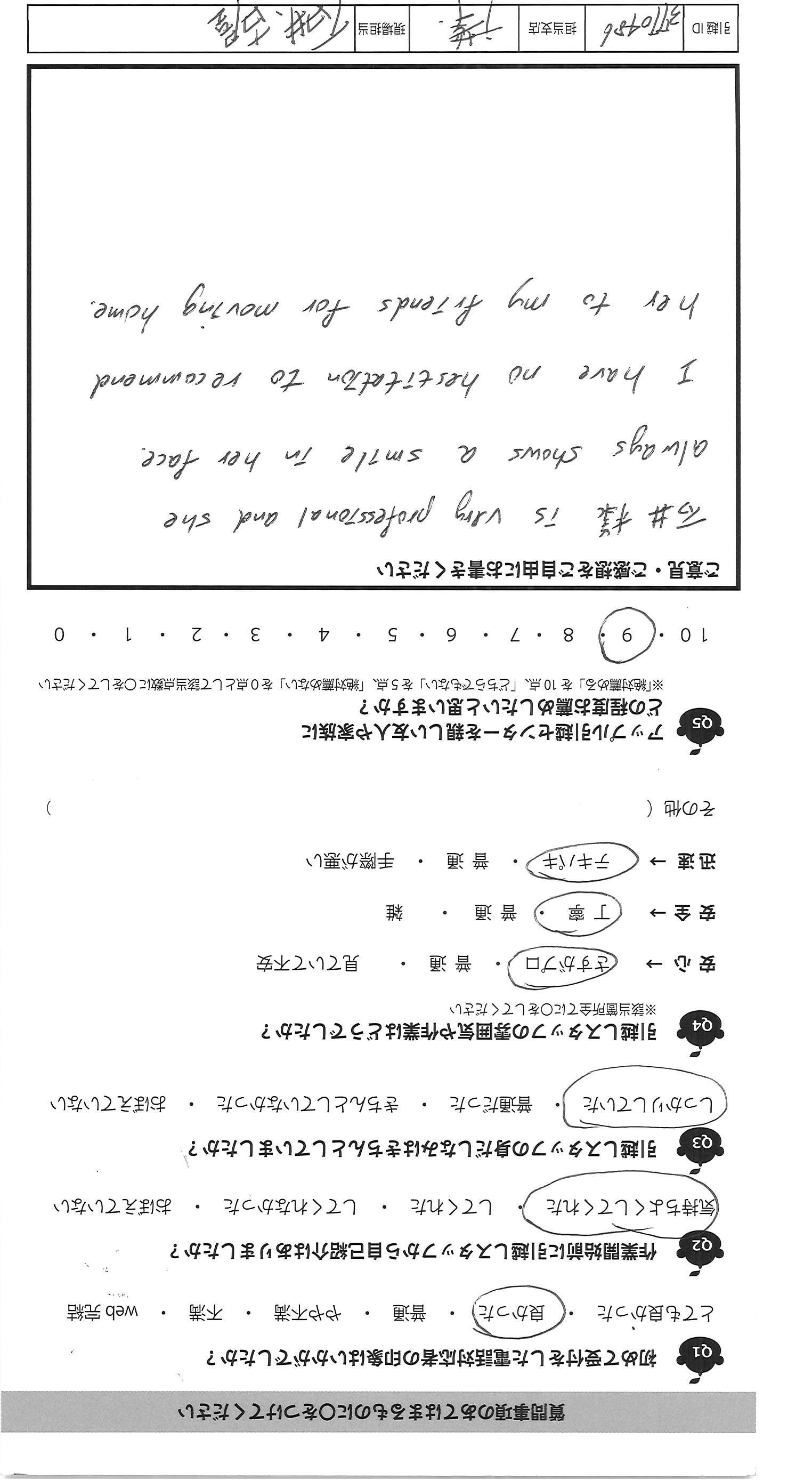A.石井様 is very and she always shows a smile in her face. I have no hesitation to recommend her to my friends for moving home.