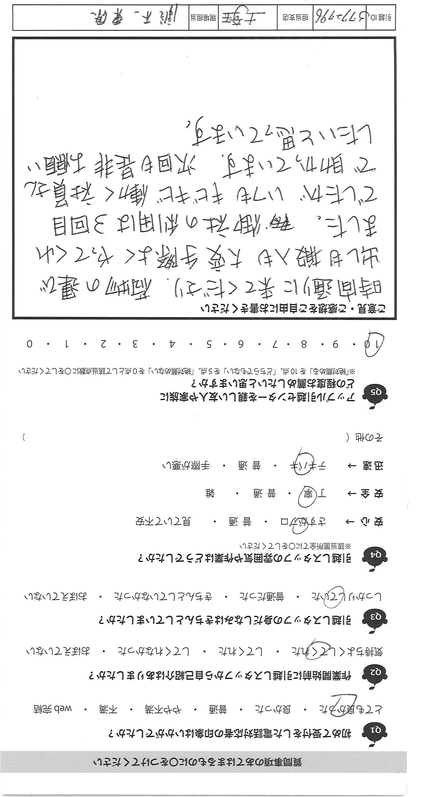 A.時間通りに来てくださり、荷物の運び 出しも搬入も大変手際よくやってくれ ました。御社の利用は3回目 でしたがいつもキビキビ働く社員さん で助かっています。次回も是非お願い したいと思っています。