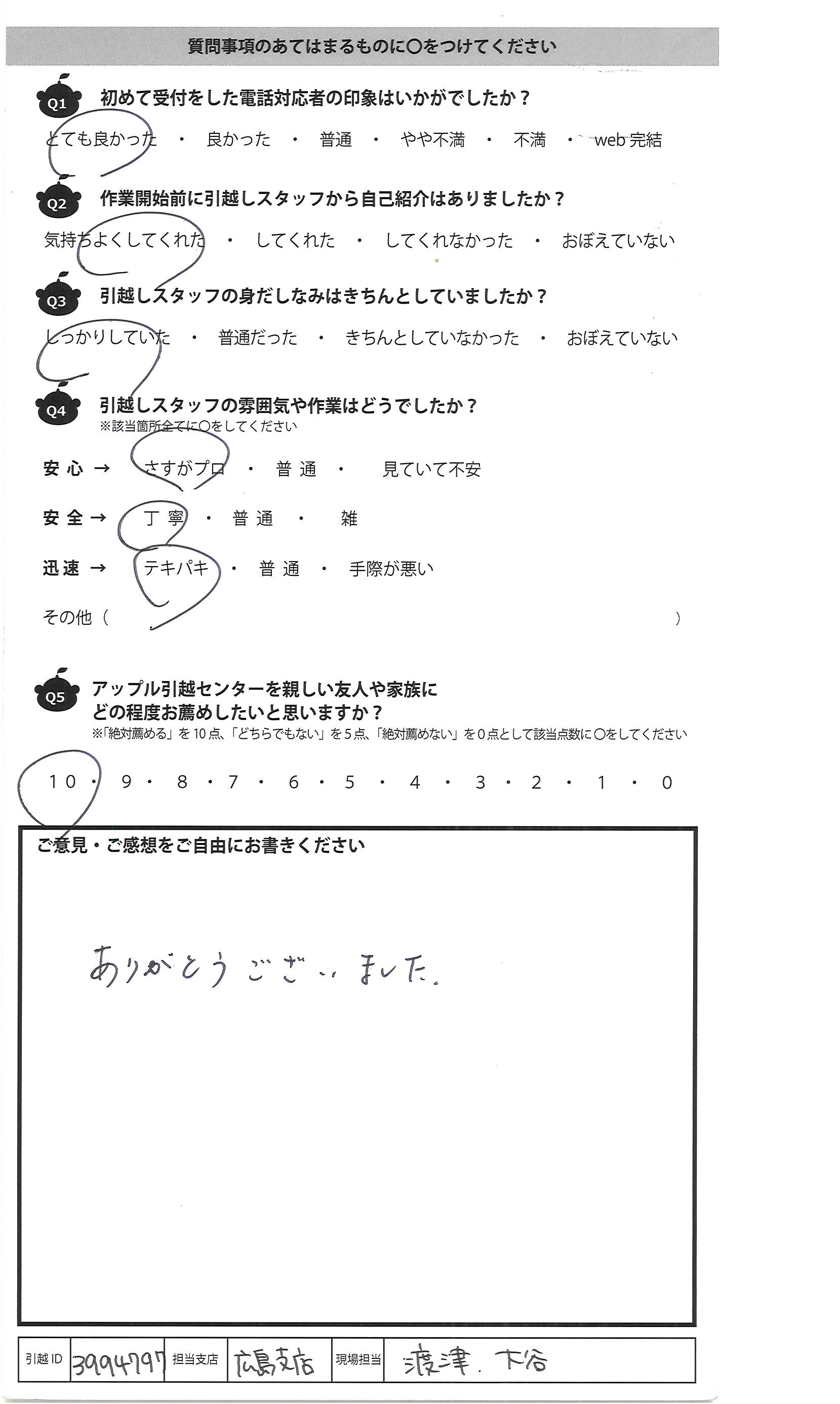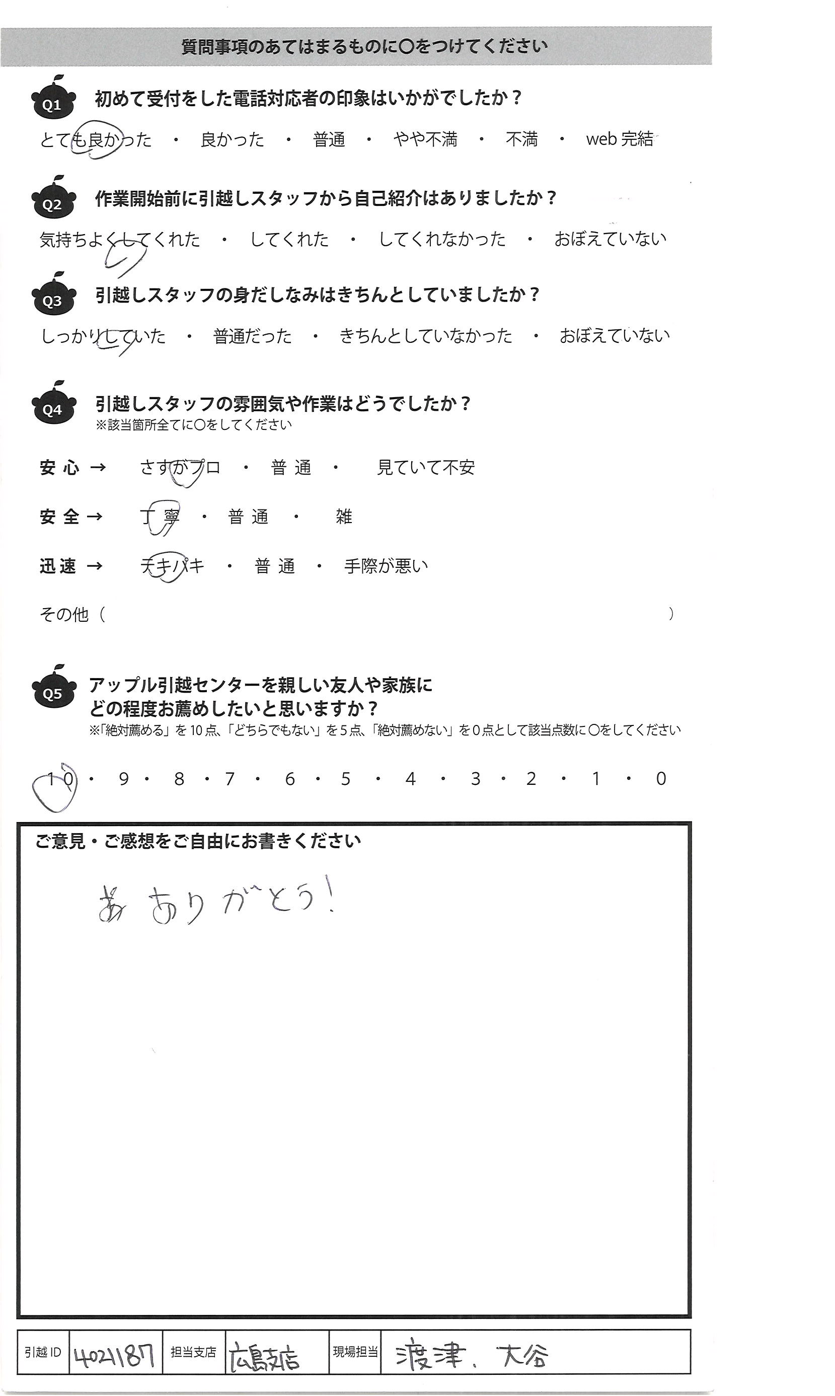 アップル引越センターでは、面映いお褒めの言葉も、胸に突き刺さるお叱りのコメントも、