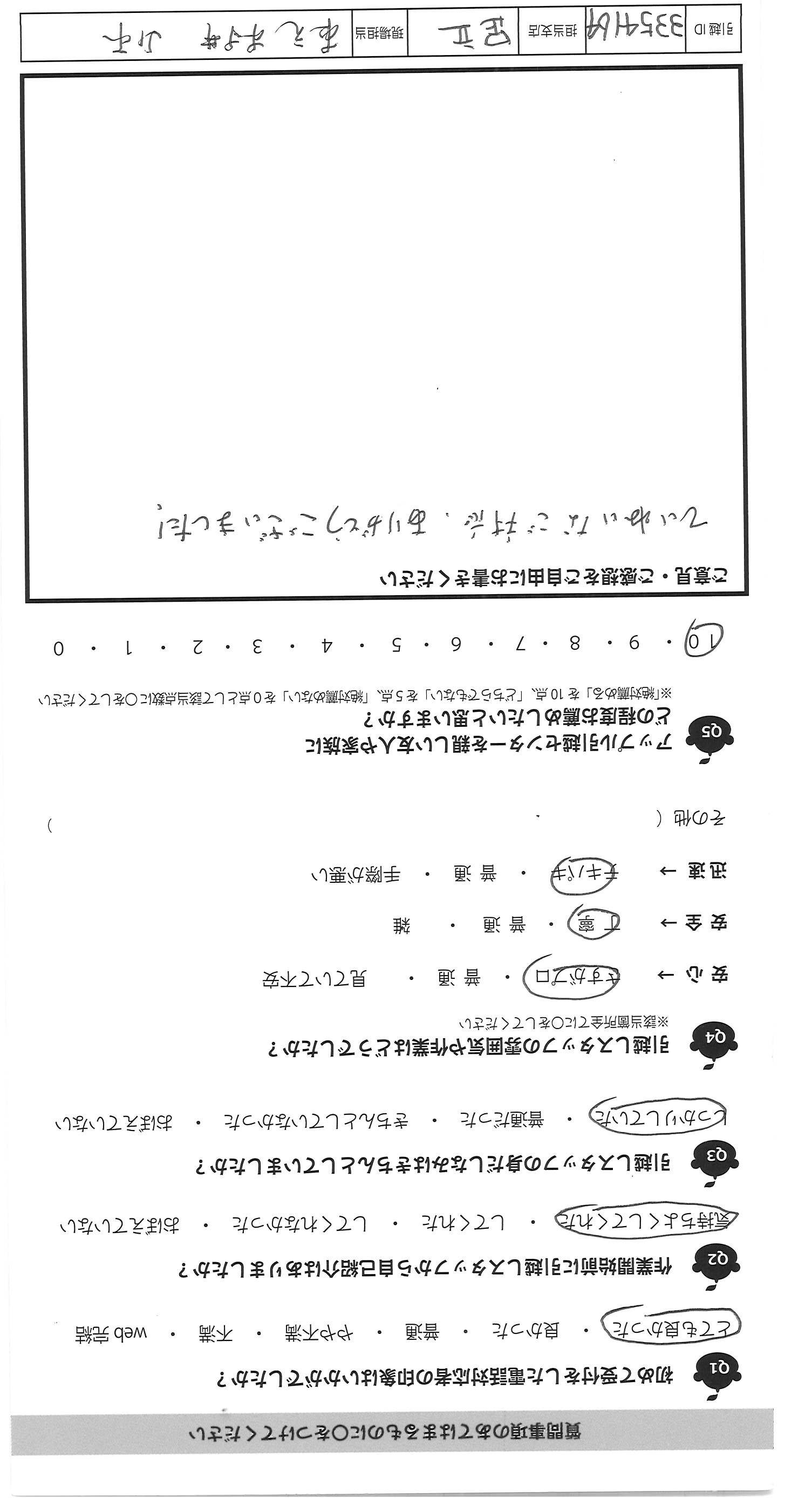 A.大阪のアパートに荷物を運んで 下さった29歳の男性ともう1人の 男性Q4の安心・安全・迅速に 加え対応・親切さ・最高に 良かったです。テーブルが破損して 引出しの中の物等とても親切に 対応して下さいました。お陰で 不安な気持ちにもならず感謝 しています。この度はありがとうございました。