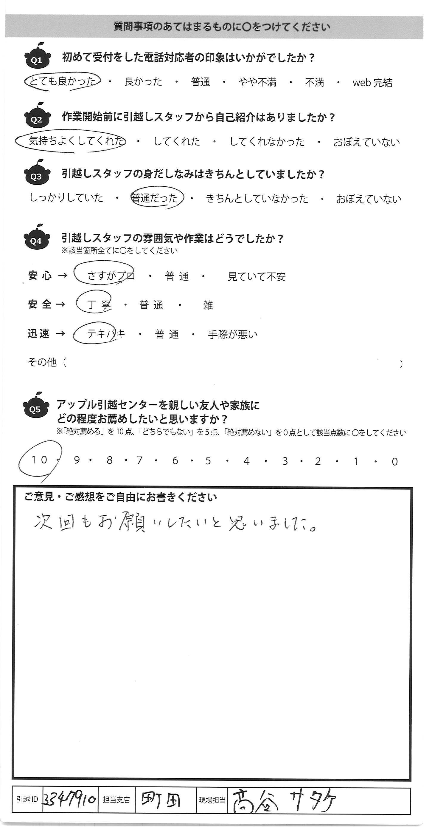 A.次回もお願いしたいと思いました。