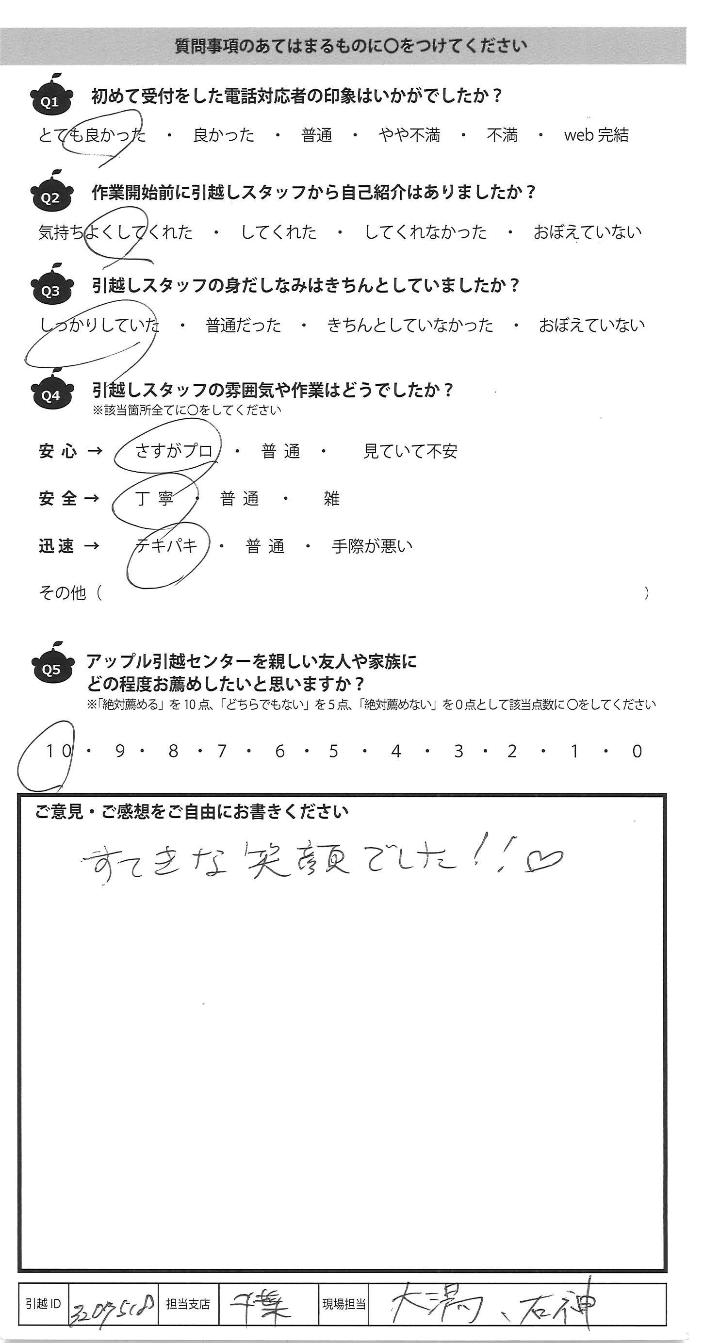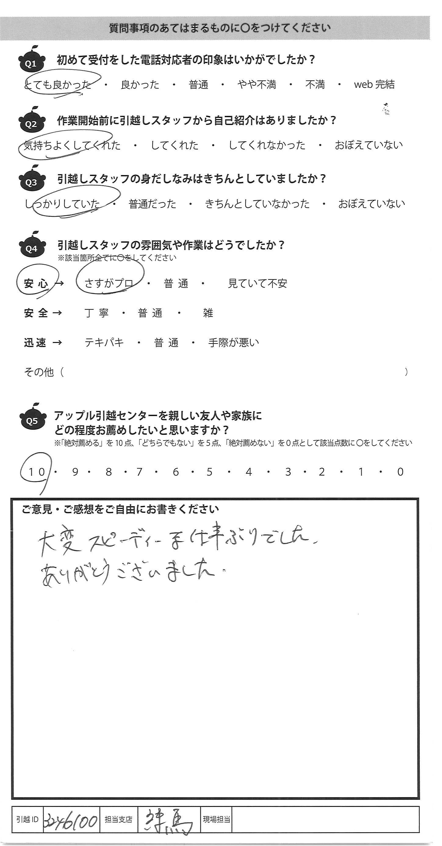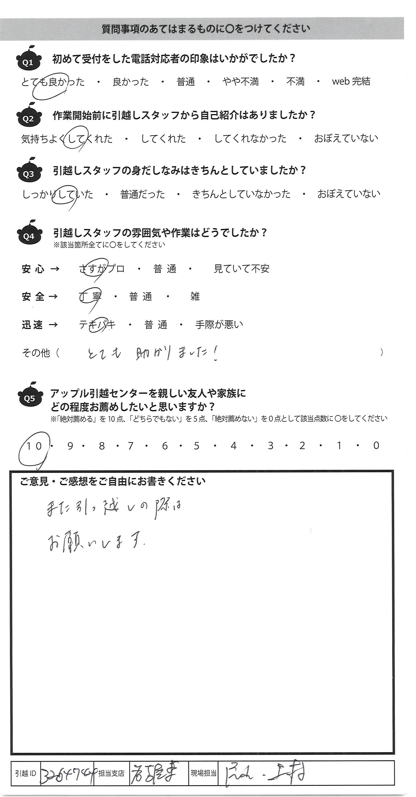 アップル引越センターでは、面映いお褒めの言葉も、胸に突き刺さるお叱りのコメントも、