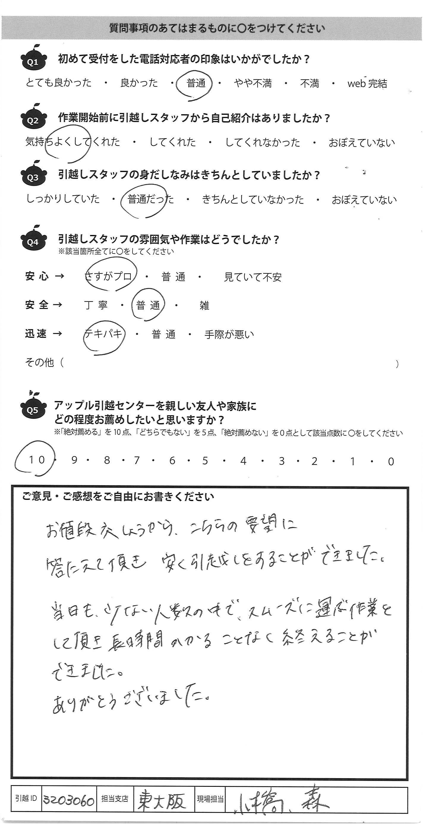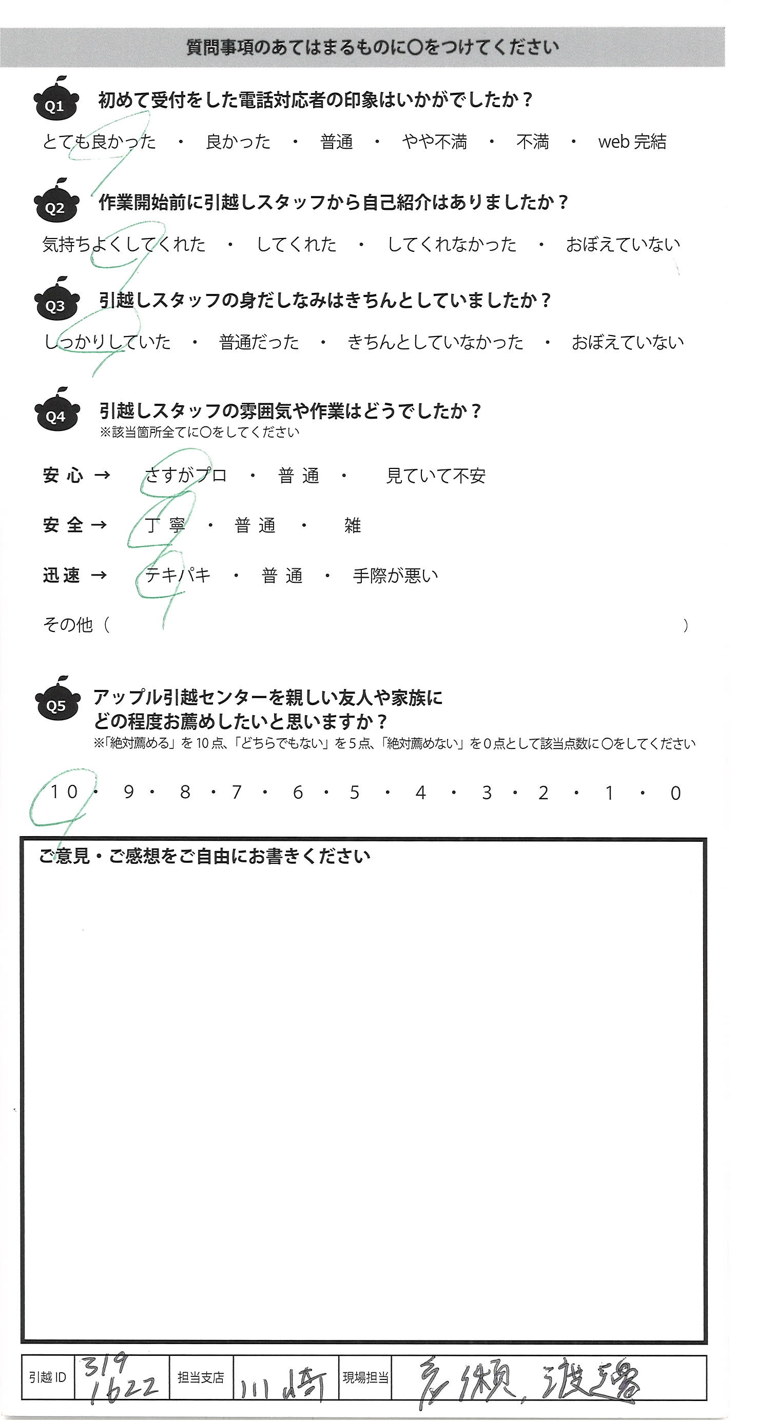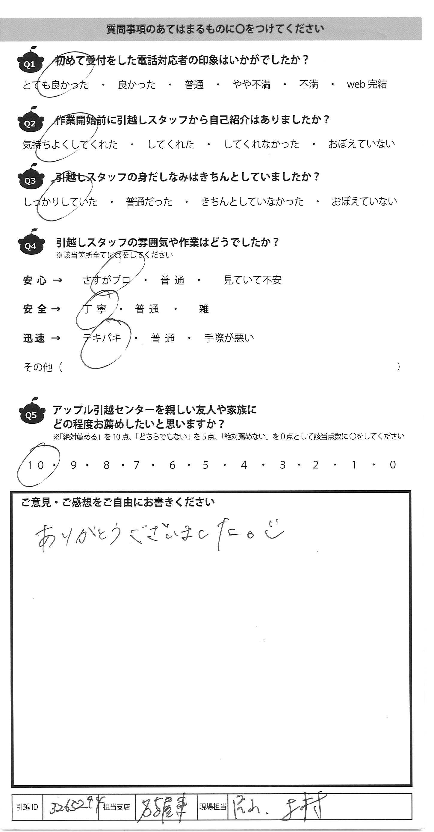 アップル引越センターでは、面映いお褒めの言葉も、胸に突き刺さるお叱りのコメントも、
