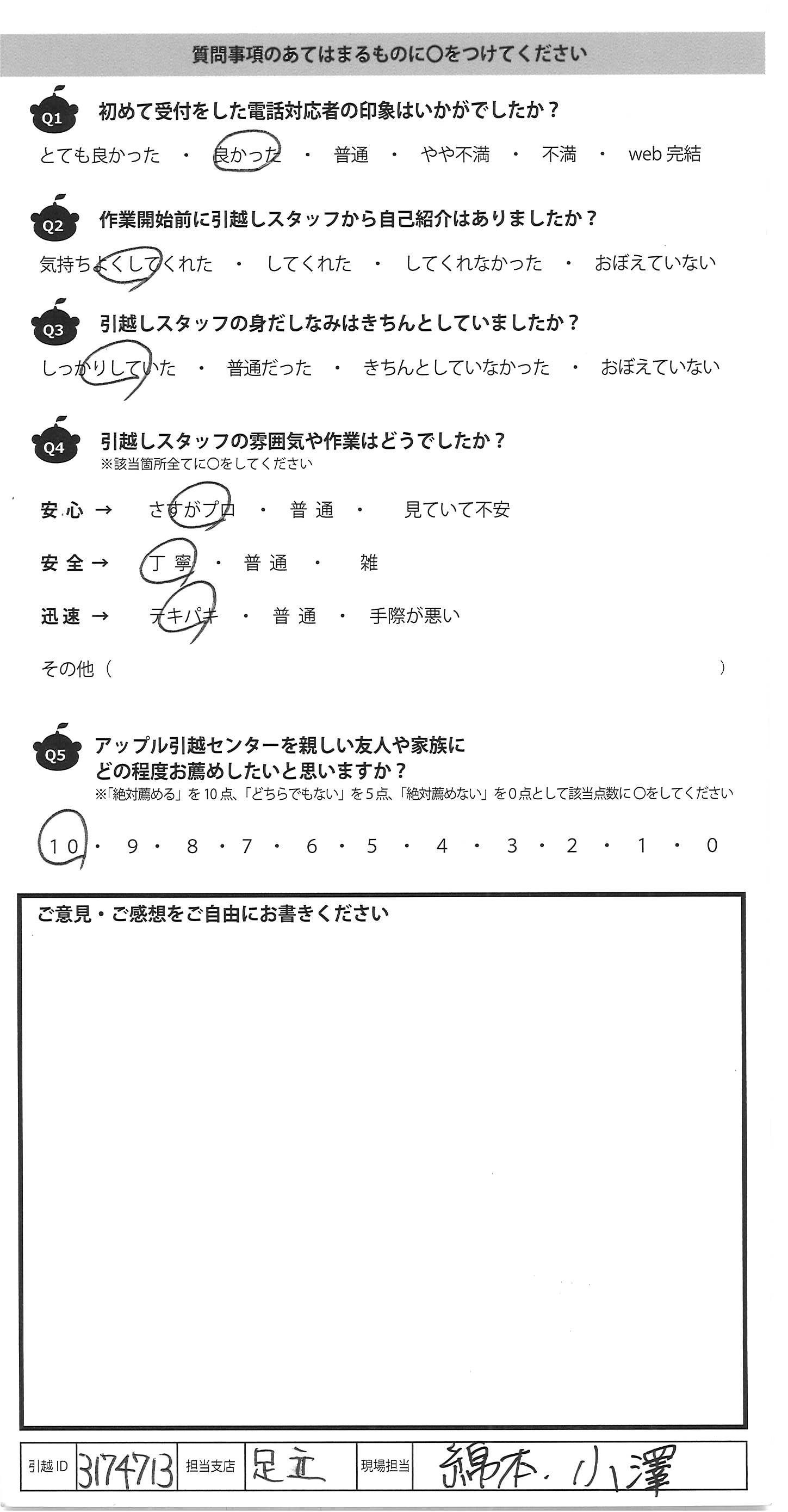 アップル引越センターでは、面映いお褒めの言葉も、胸に突き刺さるお叱りのコメントも、
