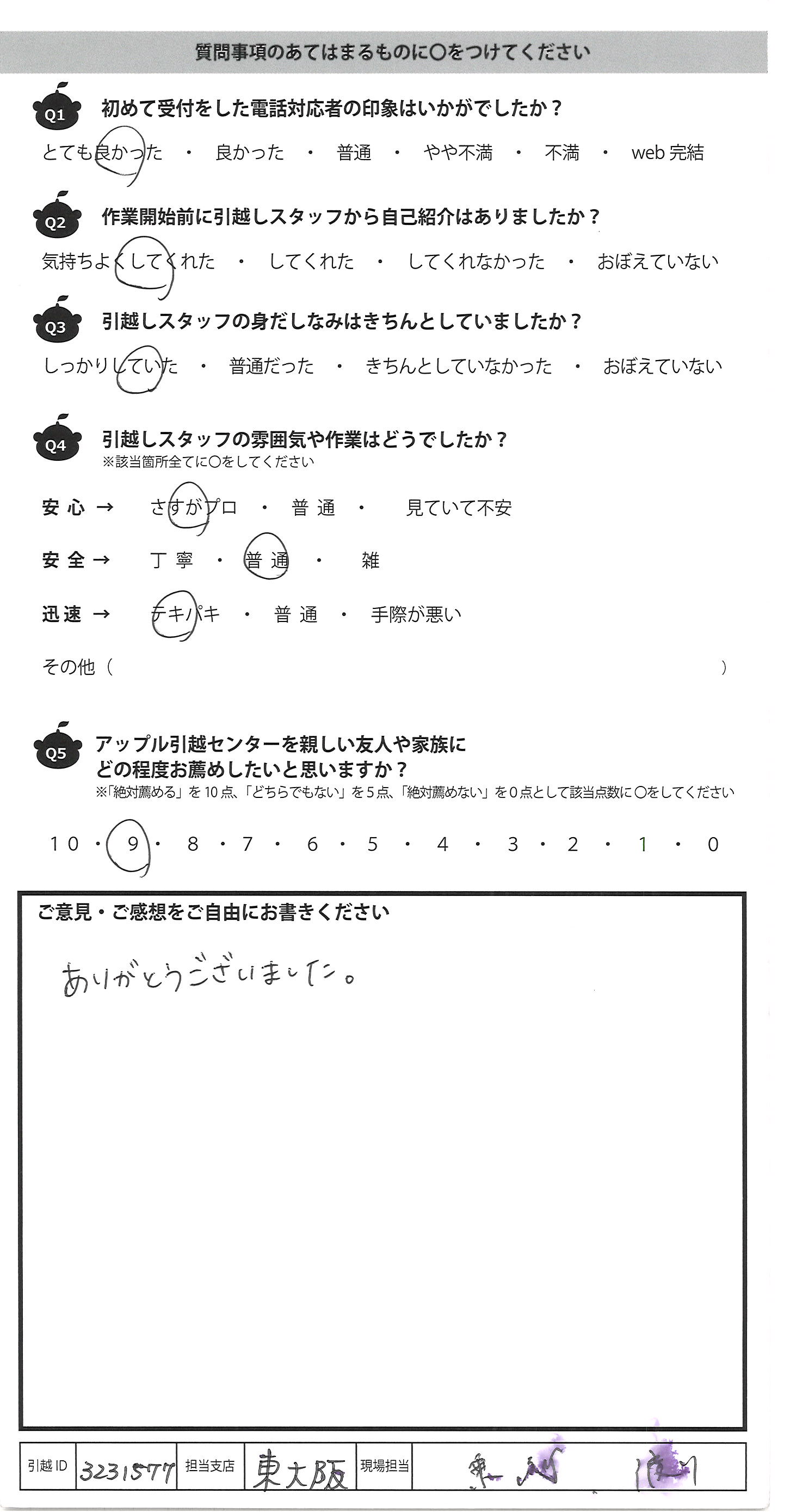 アップル引越センターでは、面映いお褒めの言葉も、胸に突き刺さるお叱りのコメントも、