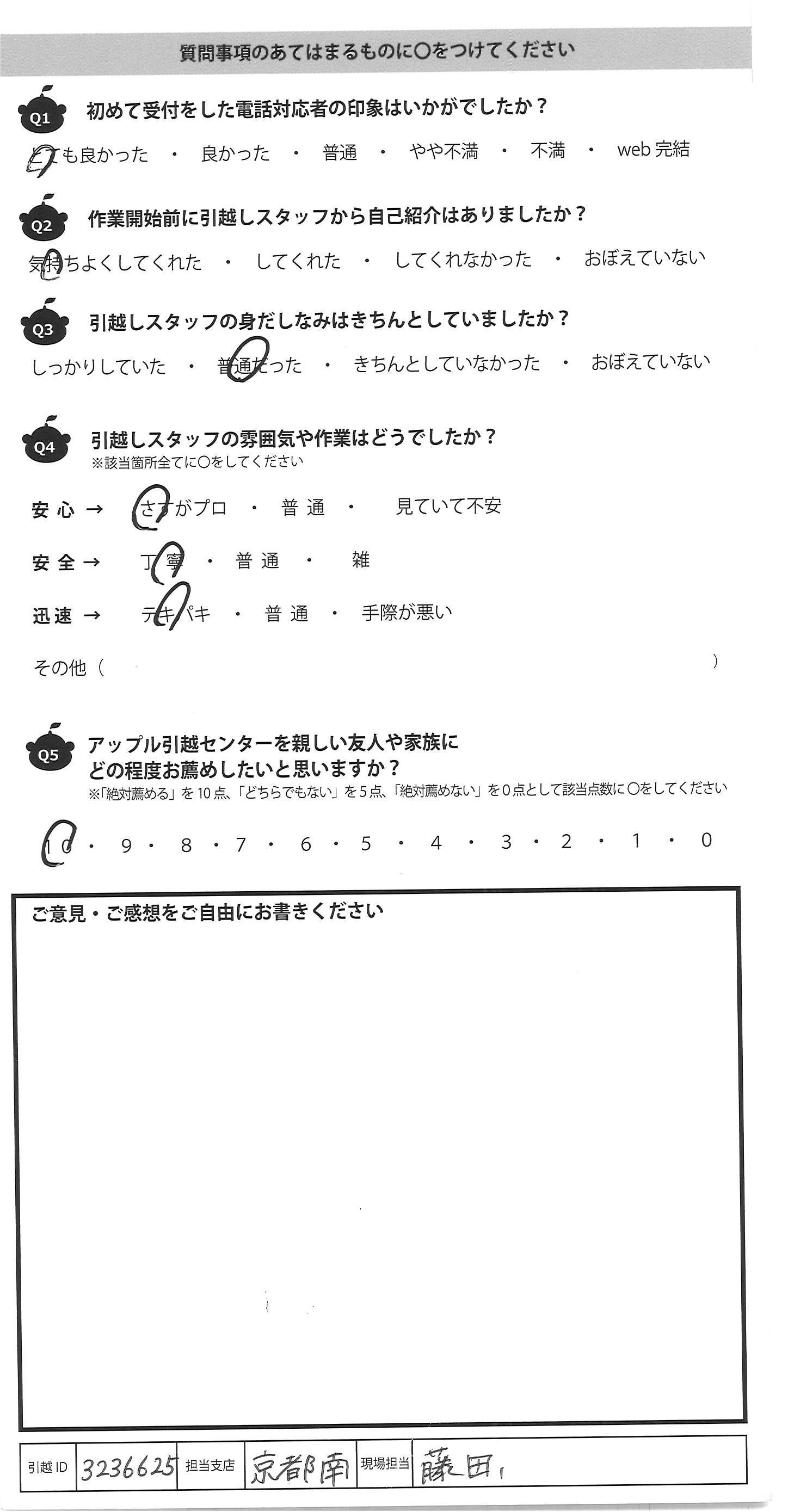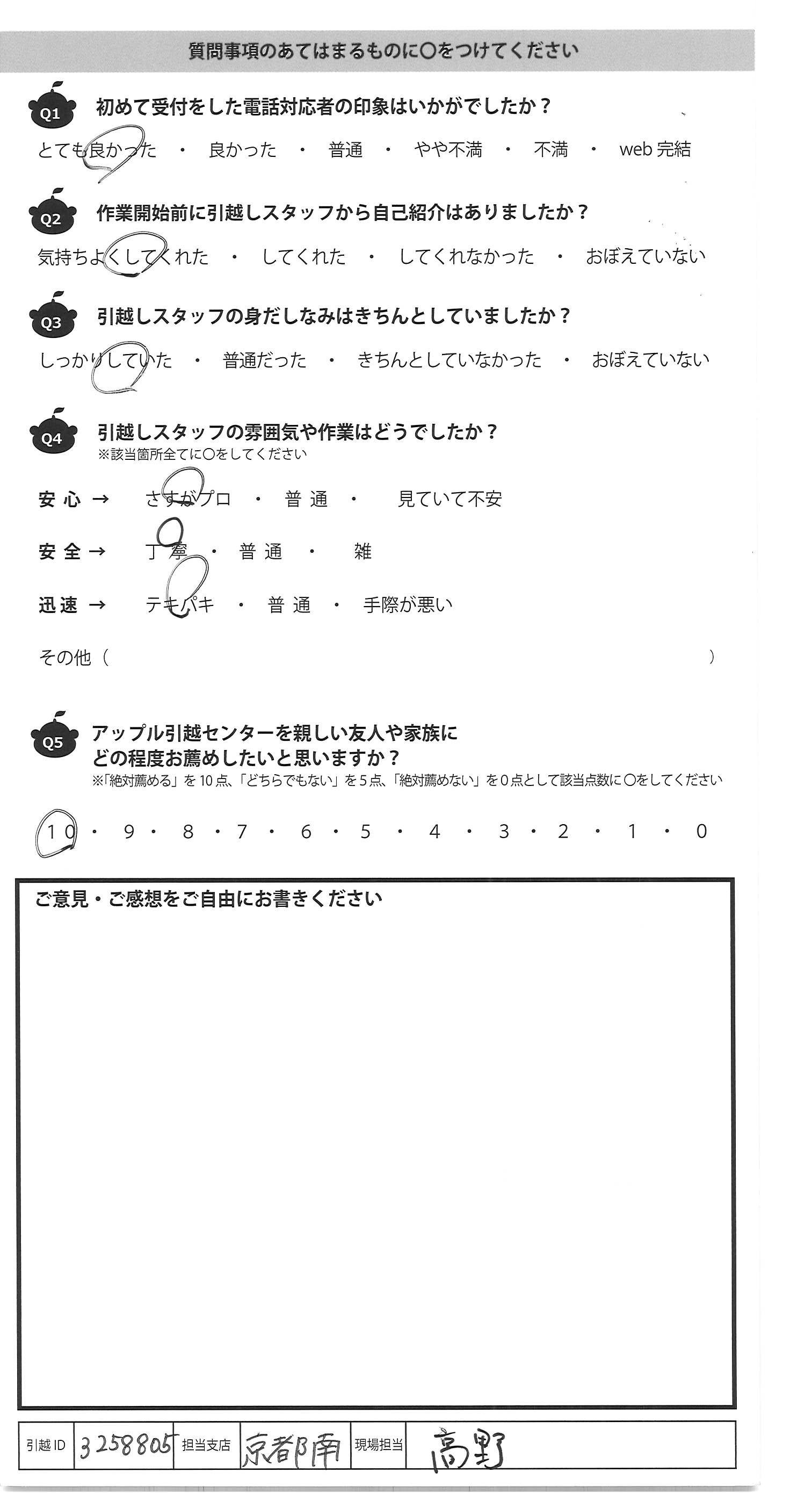 アップル引越センターでは、面映いお褒めの言葉も、胸に突き刺さるお叱りのコメントも、