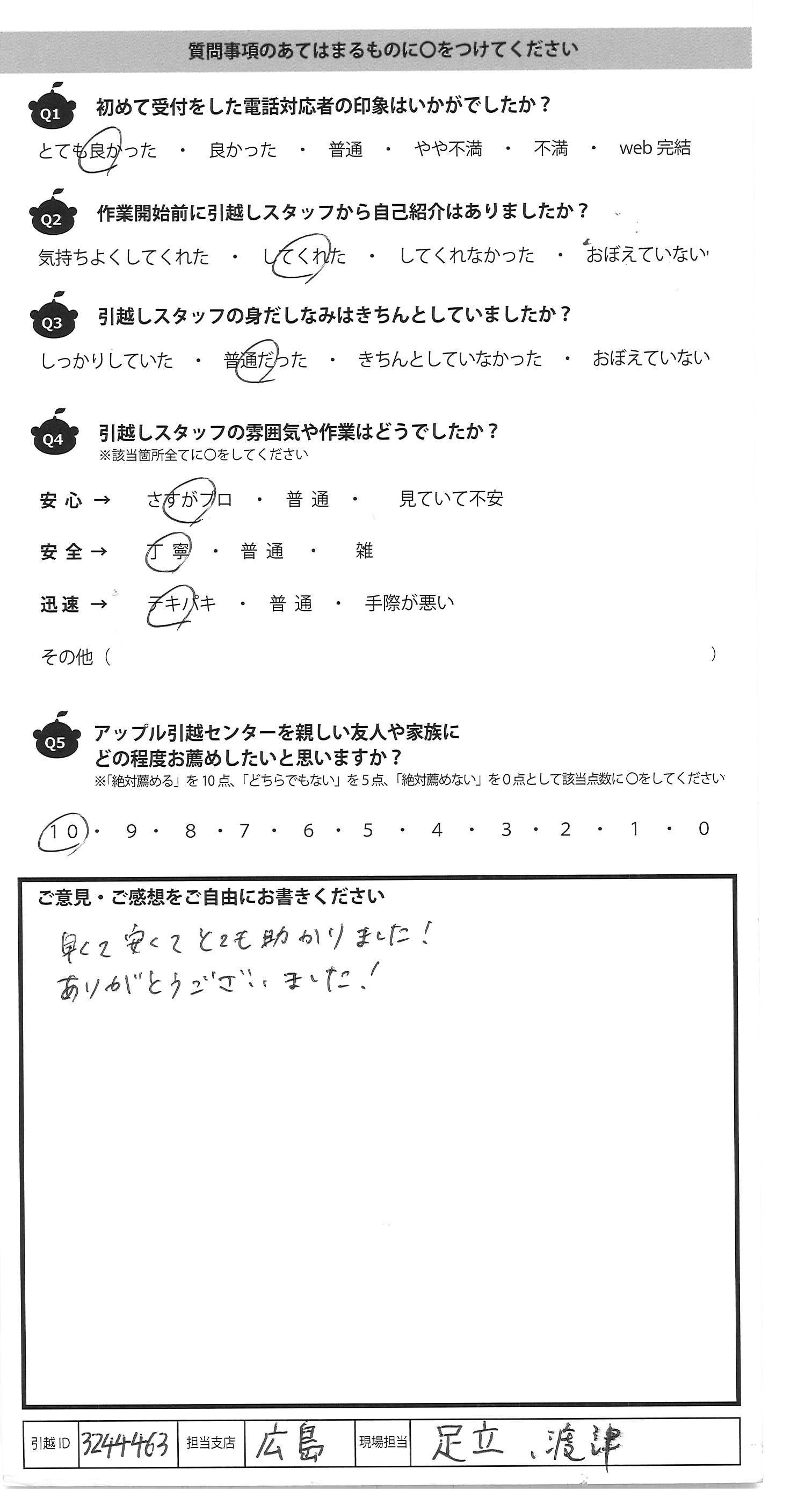 A.早くて安くてとても助かりました! ありがとうございました!
