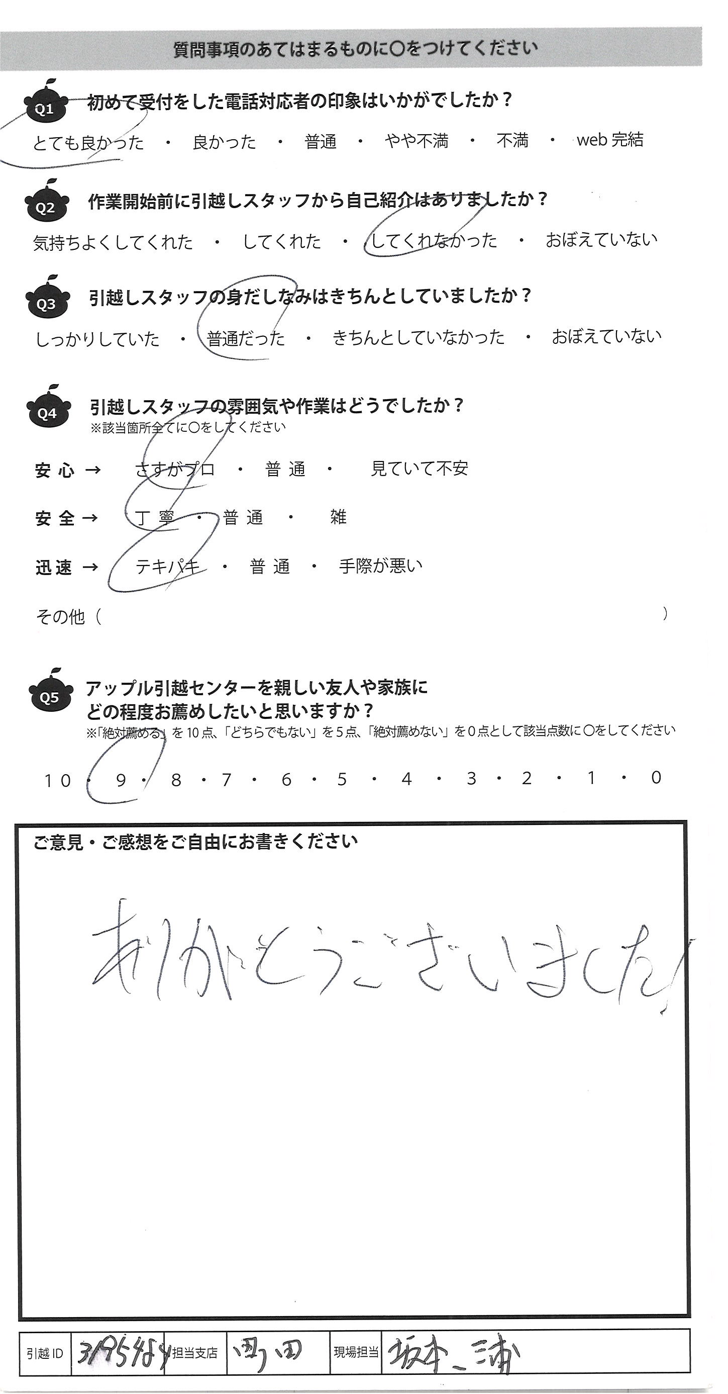 アップル引越センターでは、面映いお褒めの言葉も、胸に突き刺さるお叱りのコメントも、