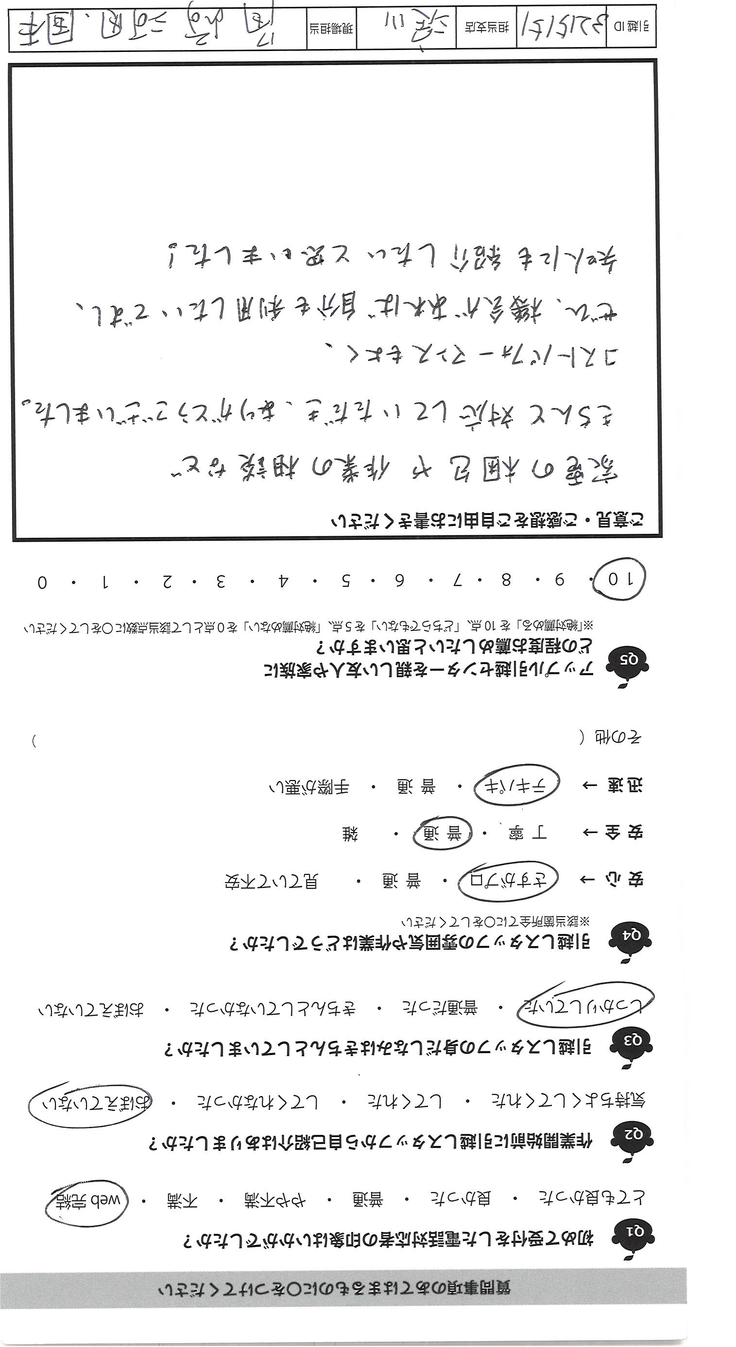 A.帰り際にアンケートハガキを 頂いたのですが 誤って紛失してお送り出来ないのが 唯一の残念な事です。 もし再度お送り頂けると幸いです。