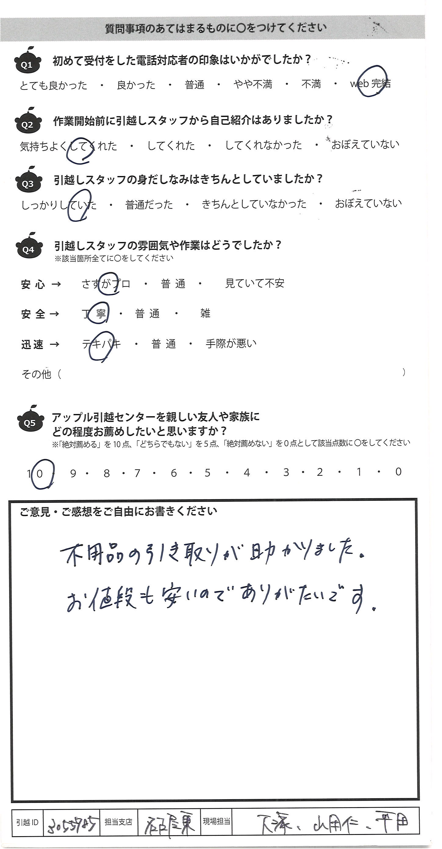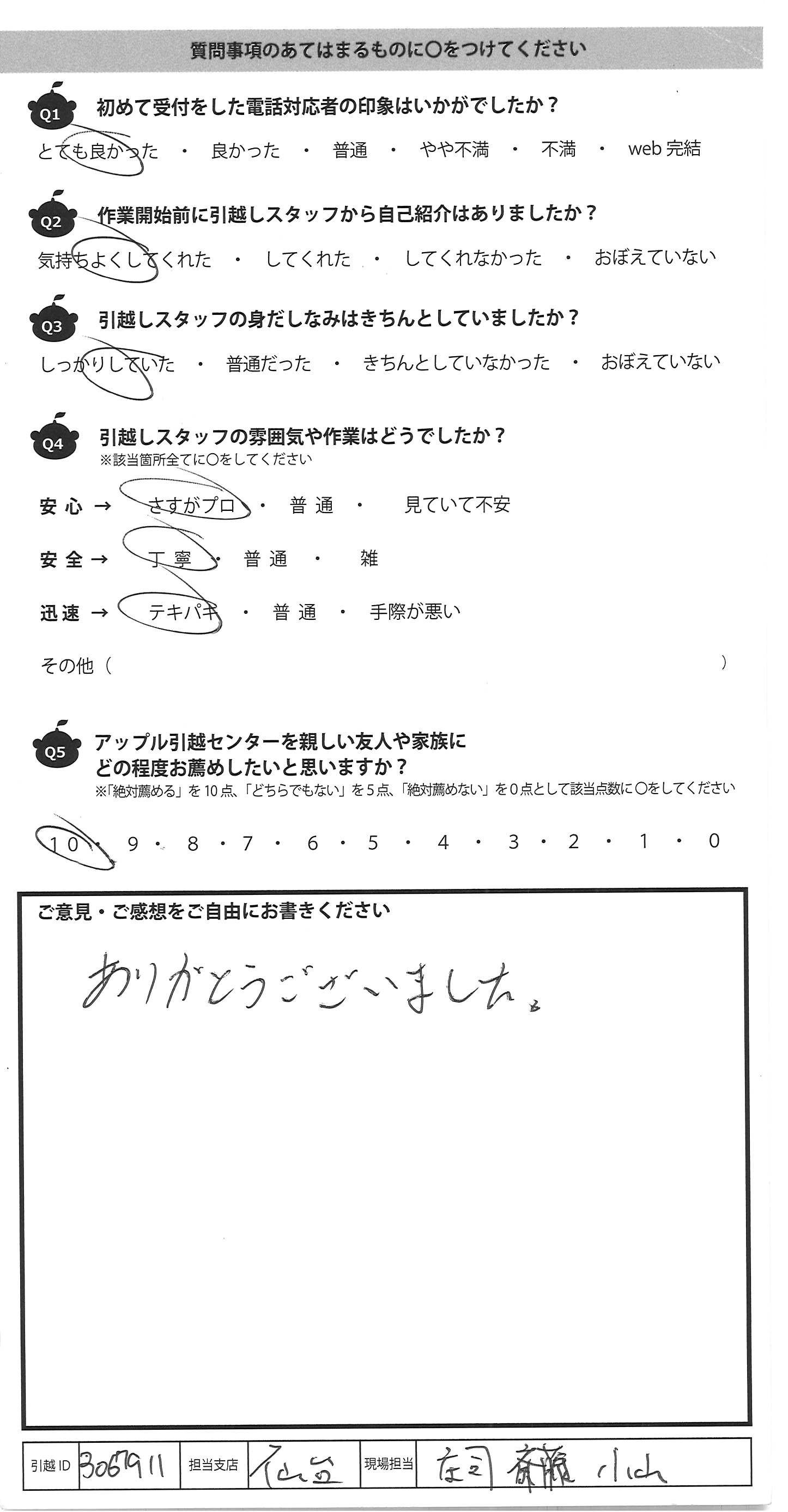 アップル引越センターでは、面映いお褒めの言葉も、胸に突き刺さるお叱りのコメントも、