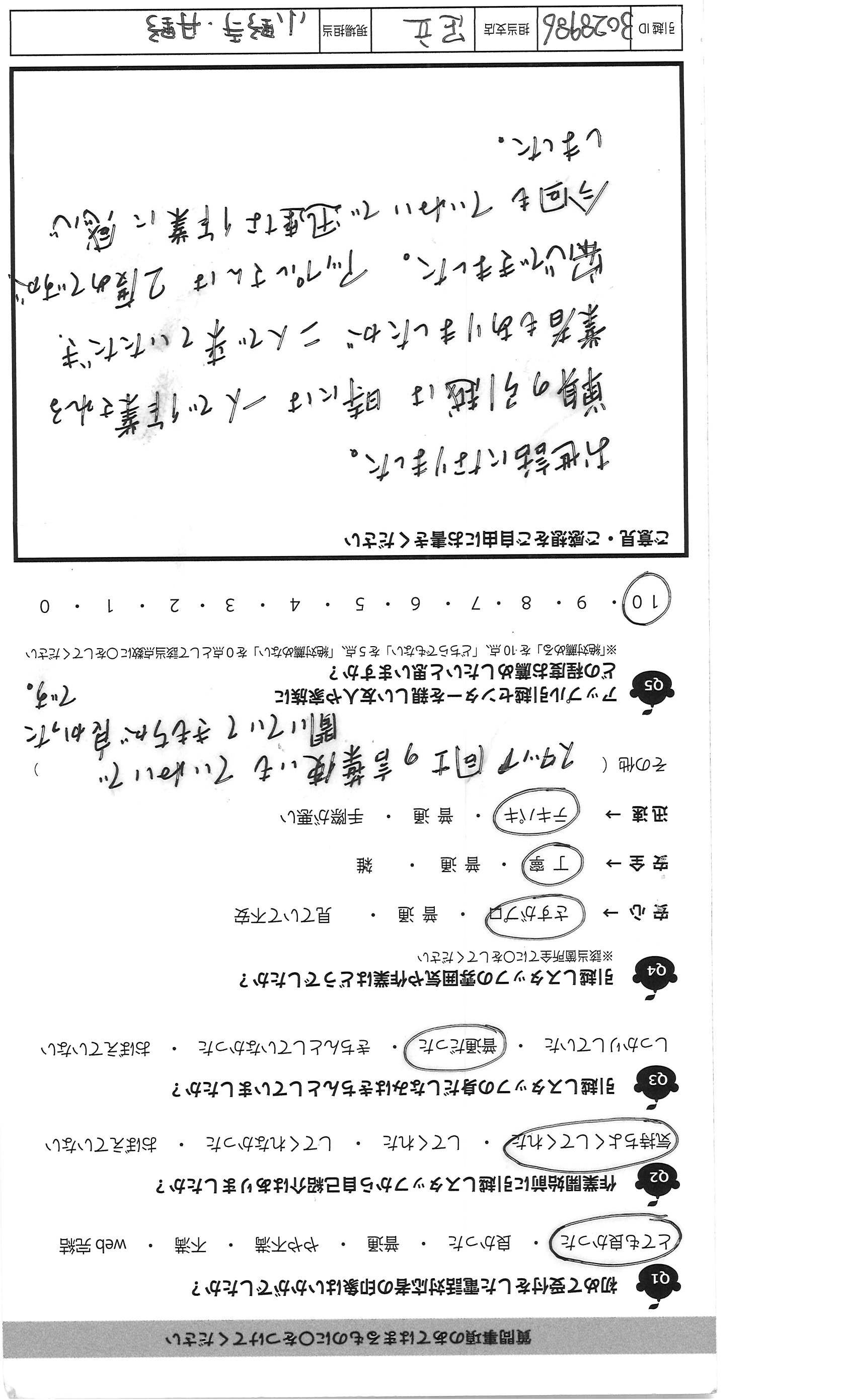 A.テキパキと作業していただき、大変助かりました。また機会があれば、お願いしたいです。