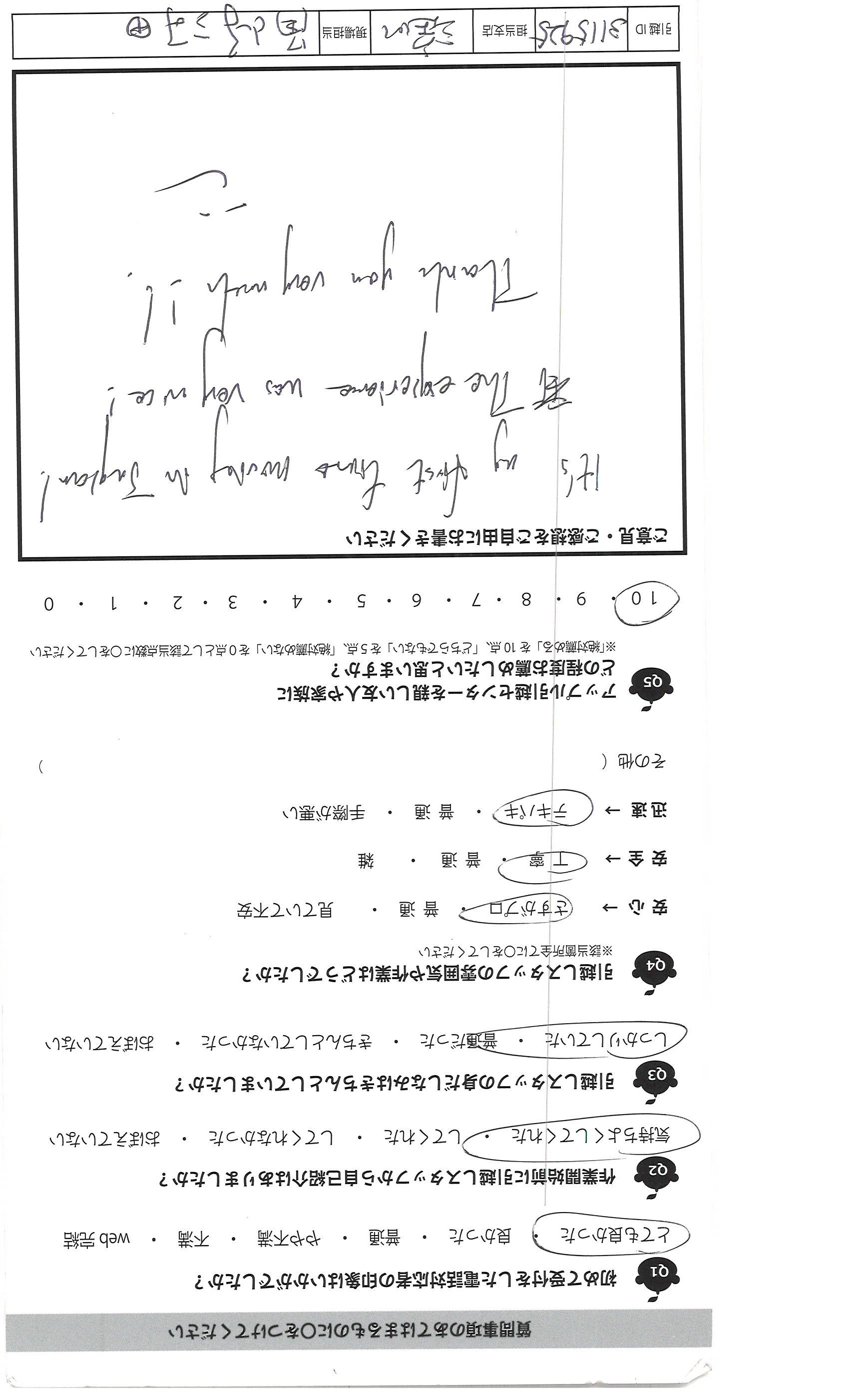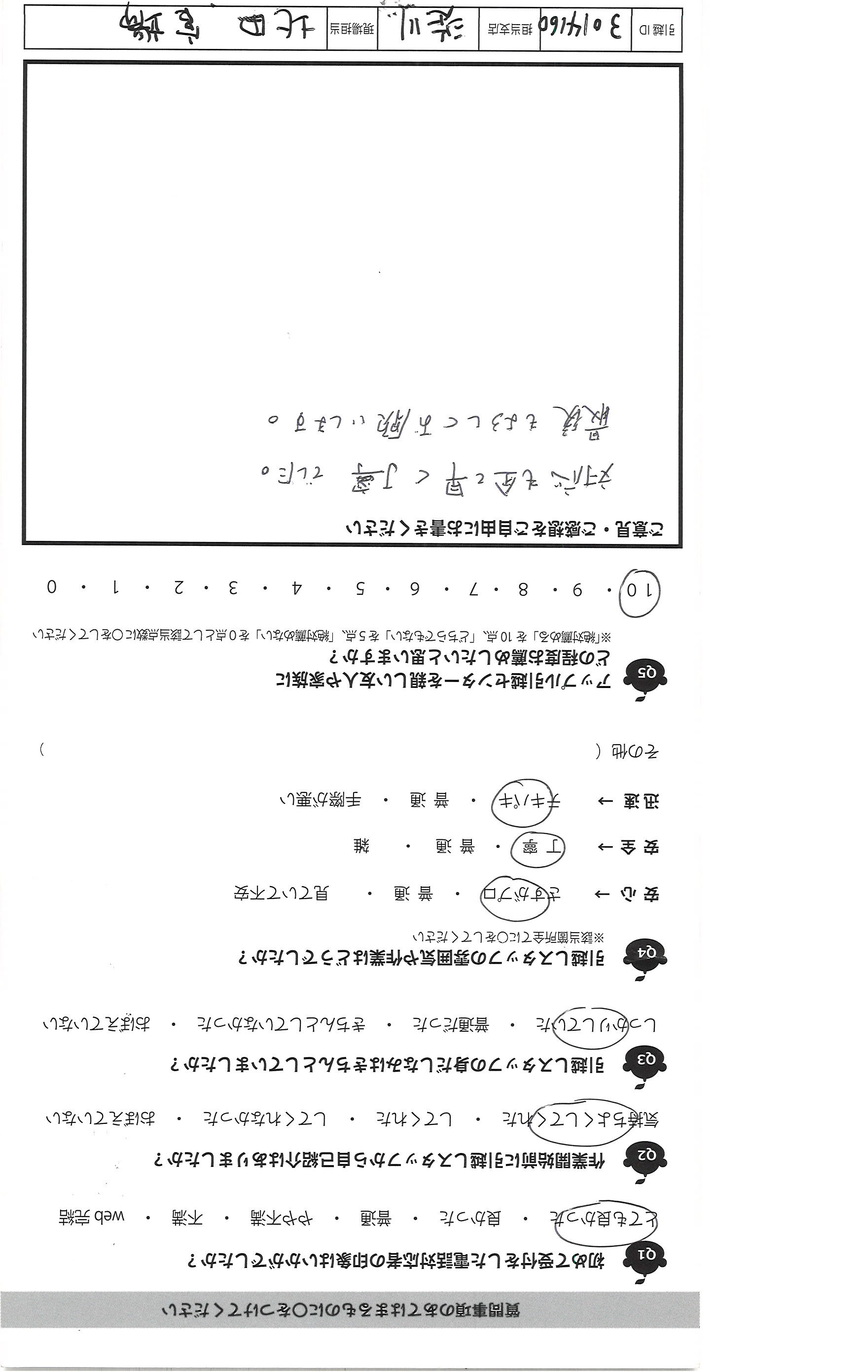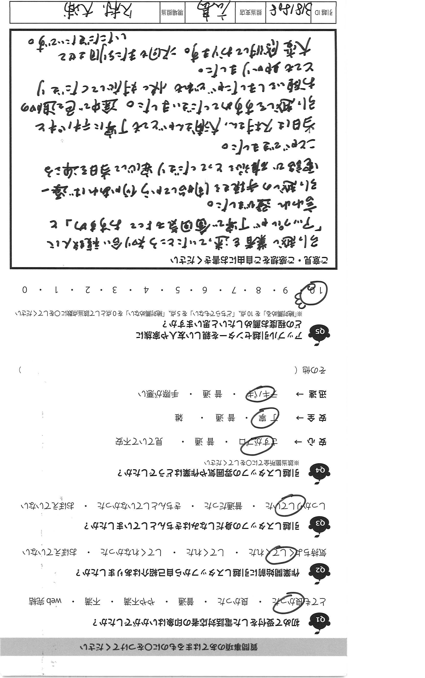 A.このたびはありがとうございました。 気になった点は 立ち会い人を代理で頼んでいてその方も 予定があったので到着前の電話が いただきたかったです。 わたしが対応したのですが、 全体的にてきぱき動いて下さり、 後半は北田さんも応援にきてくださり 3人で連携して早く終わるように作業 していただきました。 夜遅くまで作業ありがとうございました。