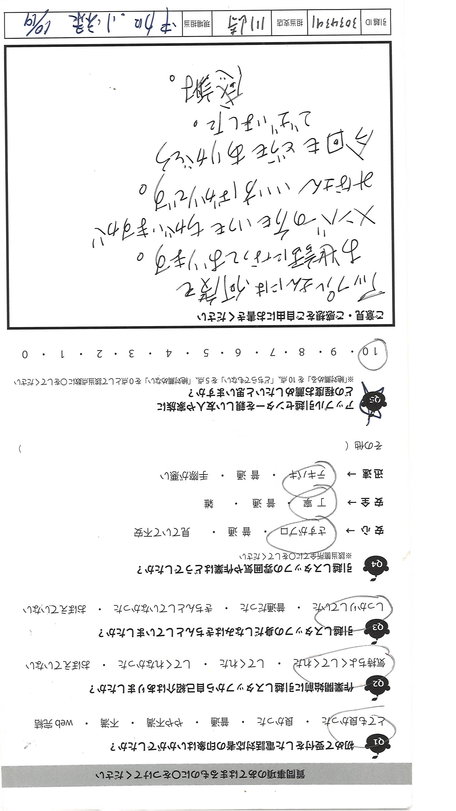 A.・笑顔がステキでとても感じが良かった。 ・丁寧に作業して頂き、安心して任せることが できた。 ・サービスがとても良かった。