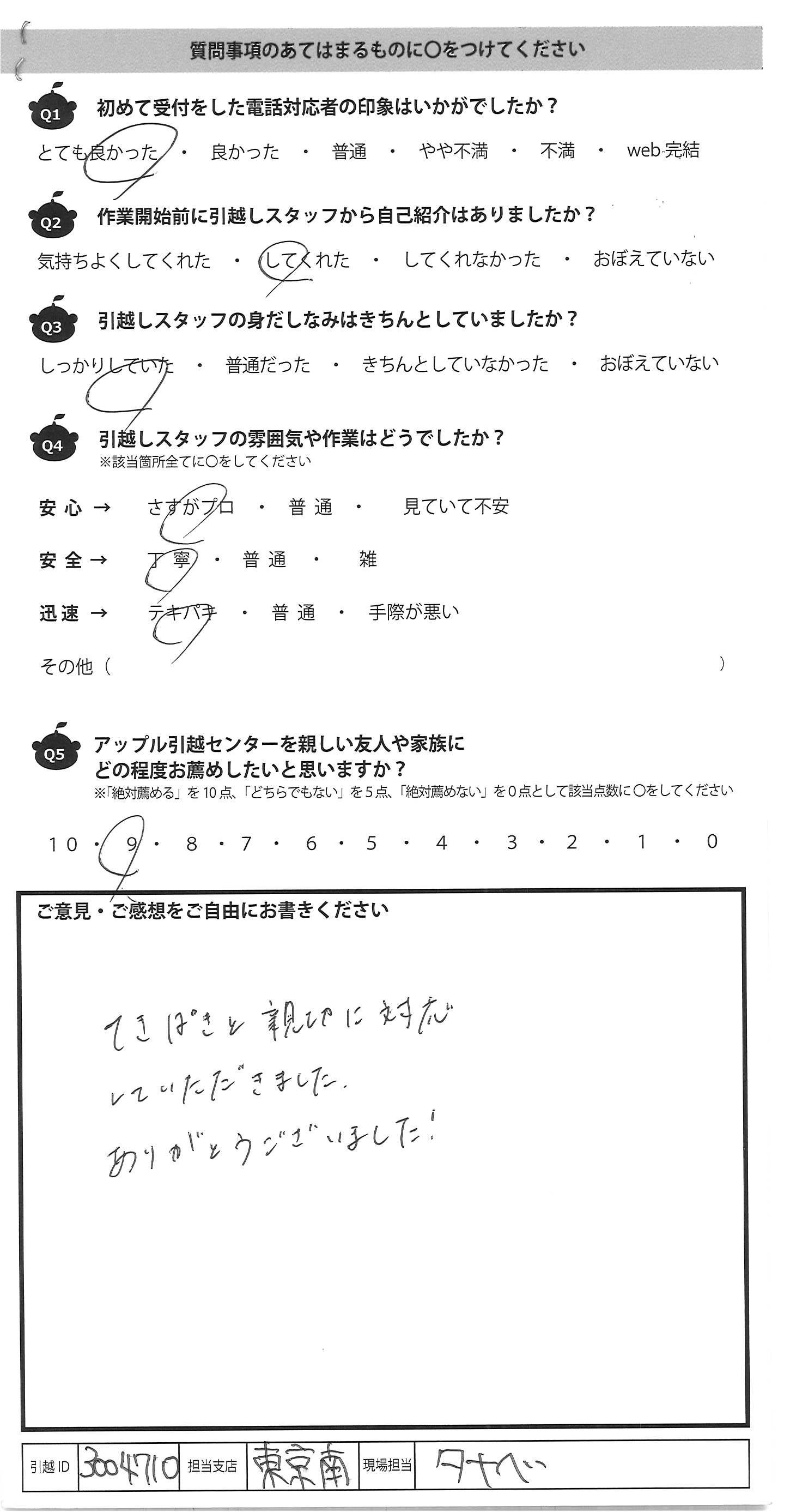 A.てきぱきと親切に対応 していただきました。 ありがとうございました!
