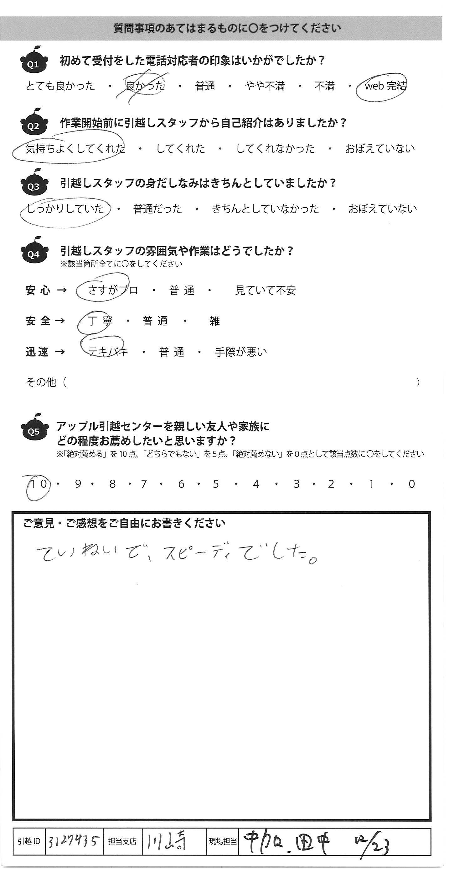 A.ていねいで、スピーディでした。