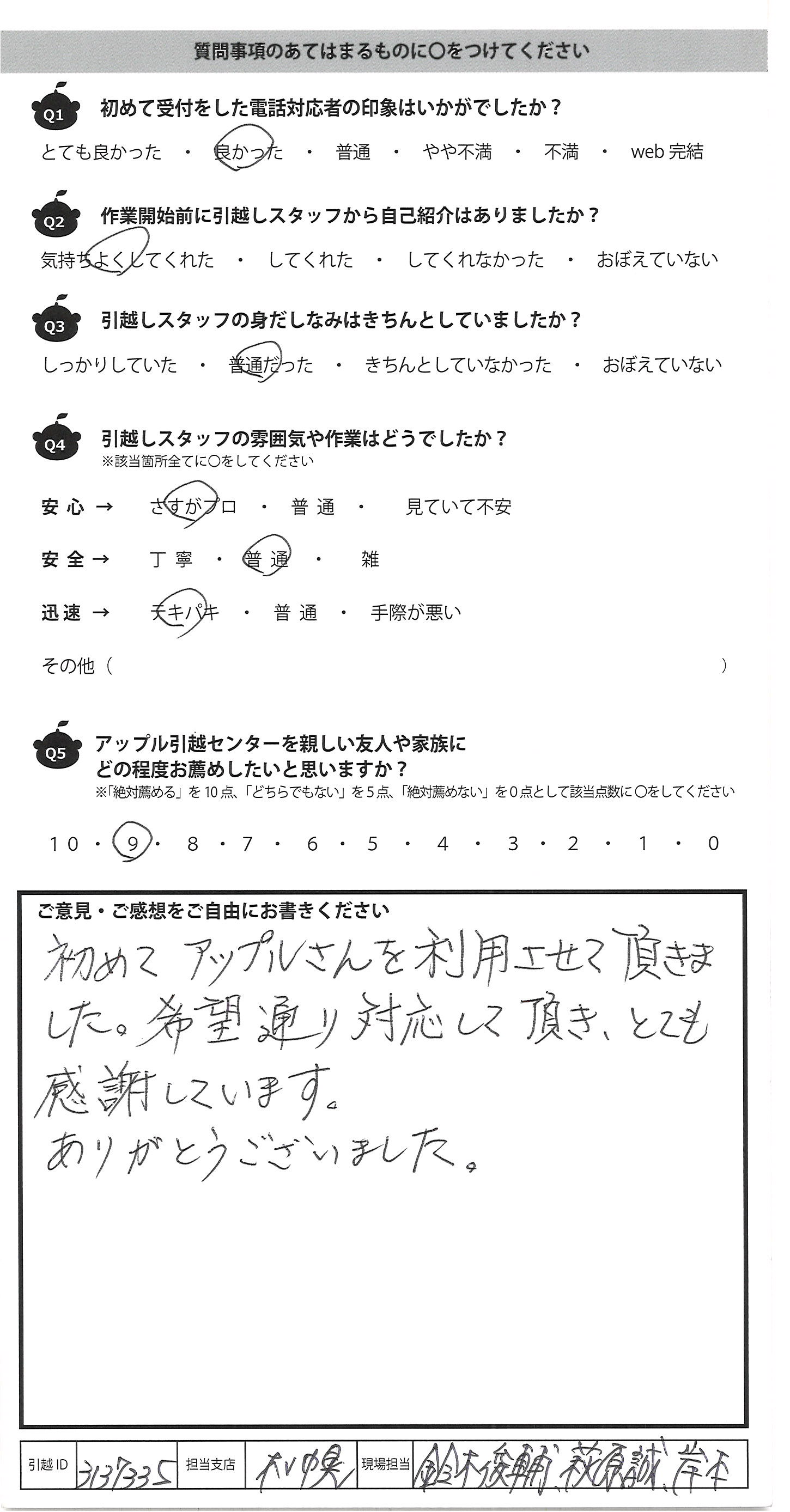 アップル引越センターでは、面映いお褒めの言葉も、胸に突き刺さるお叱りのコメントも、