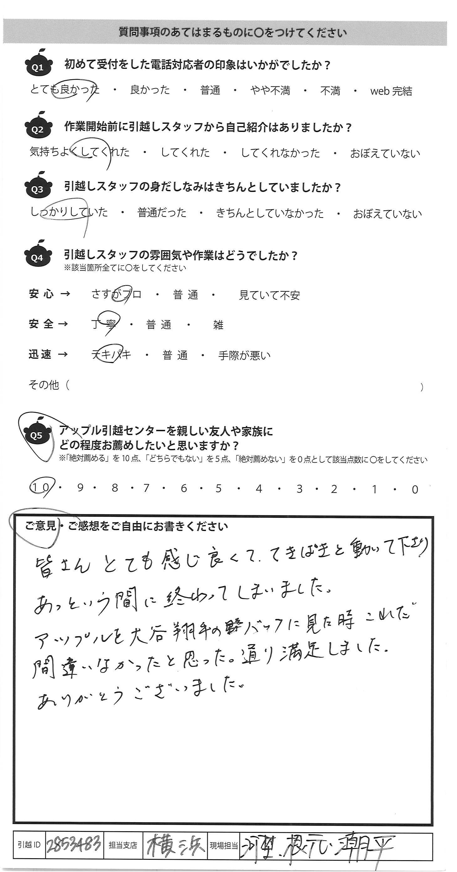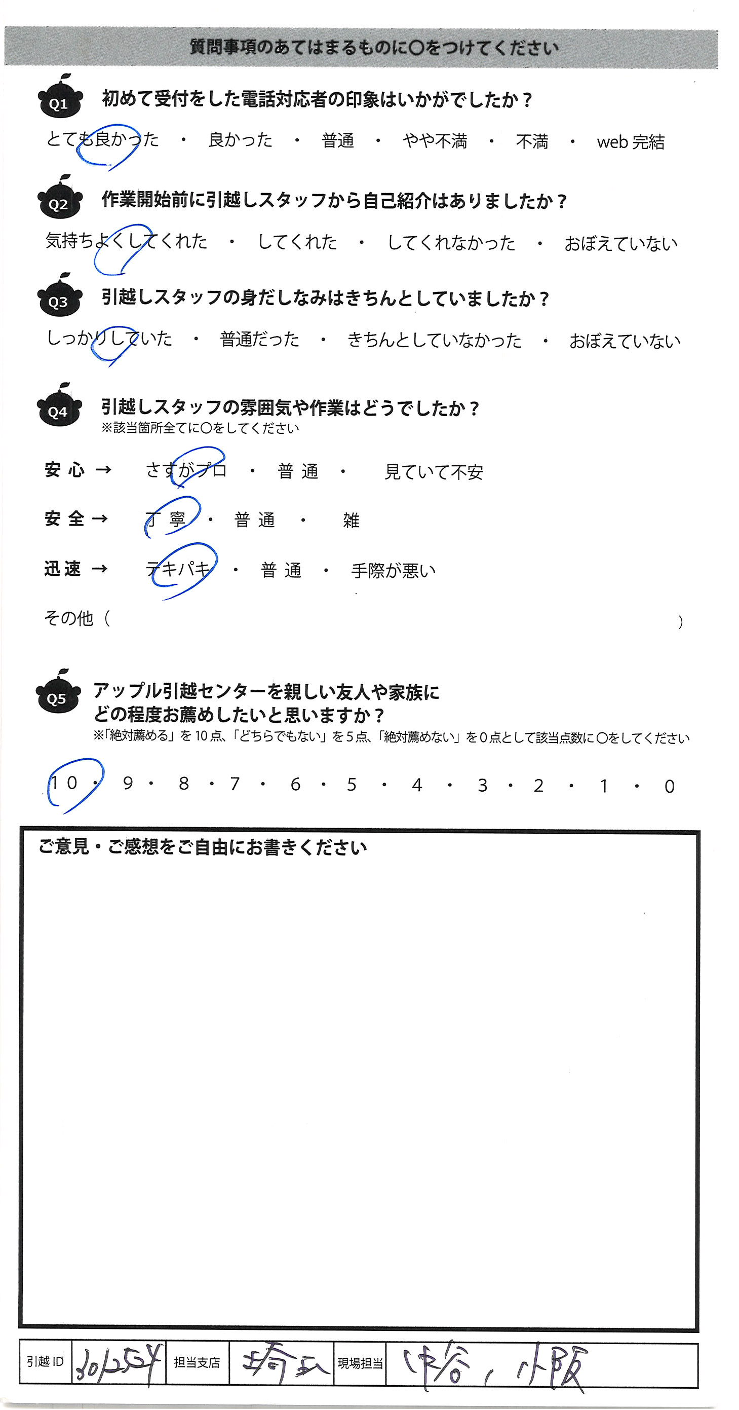 A.いつも安心しておまかせできます。 また引越しの際はよろしくお願いします。